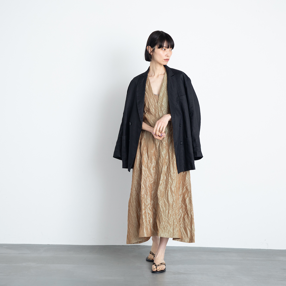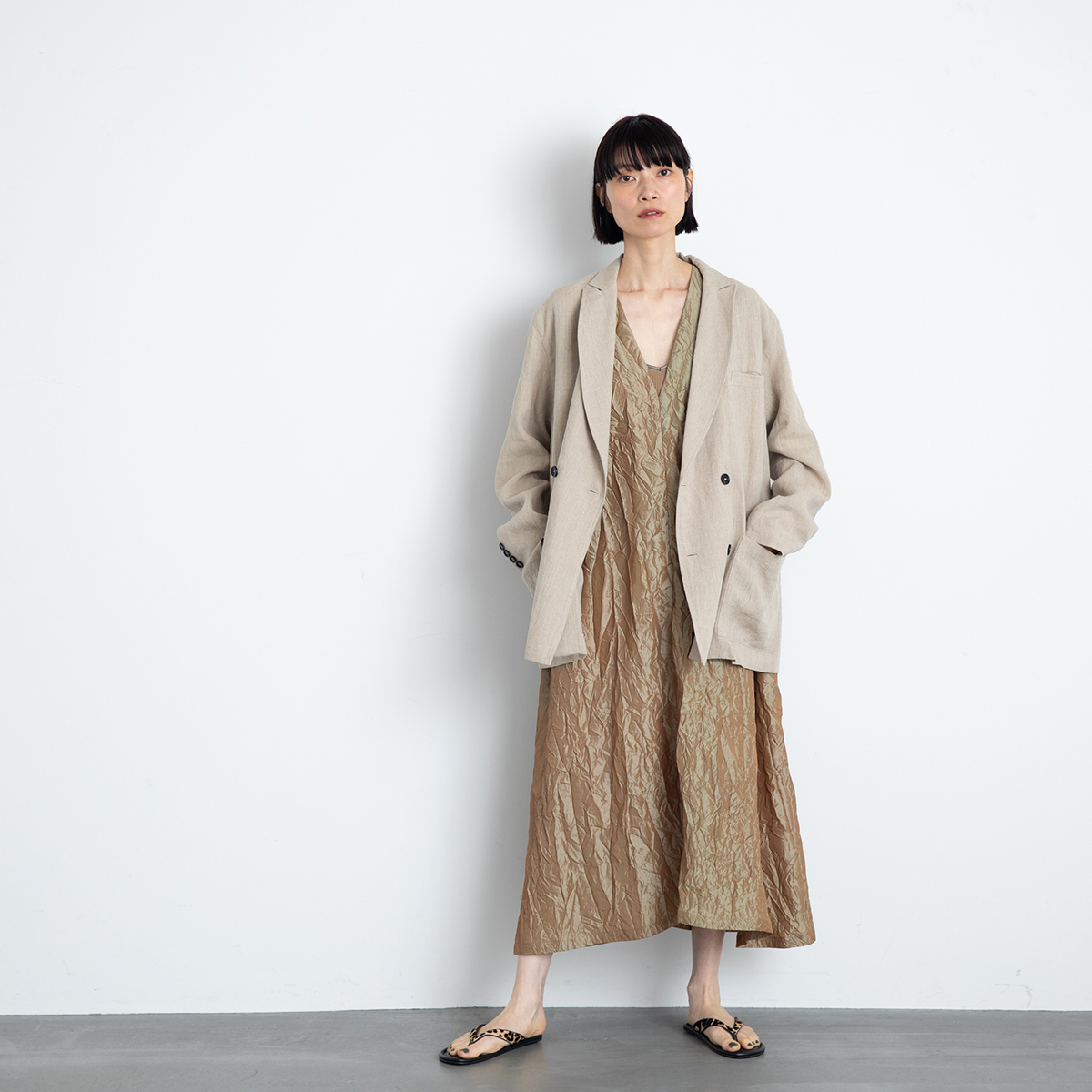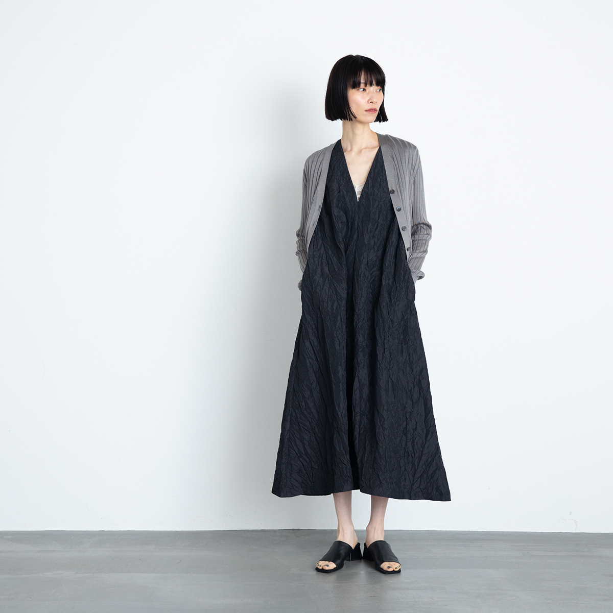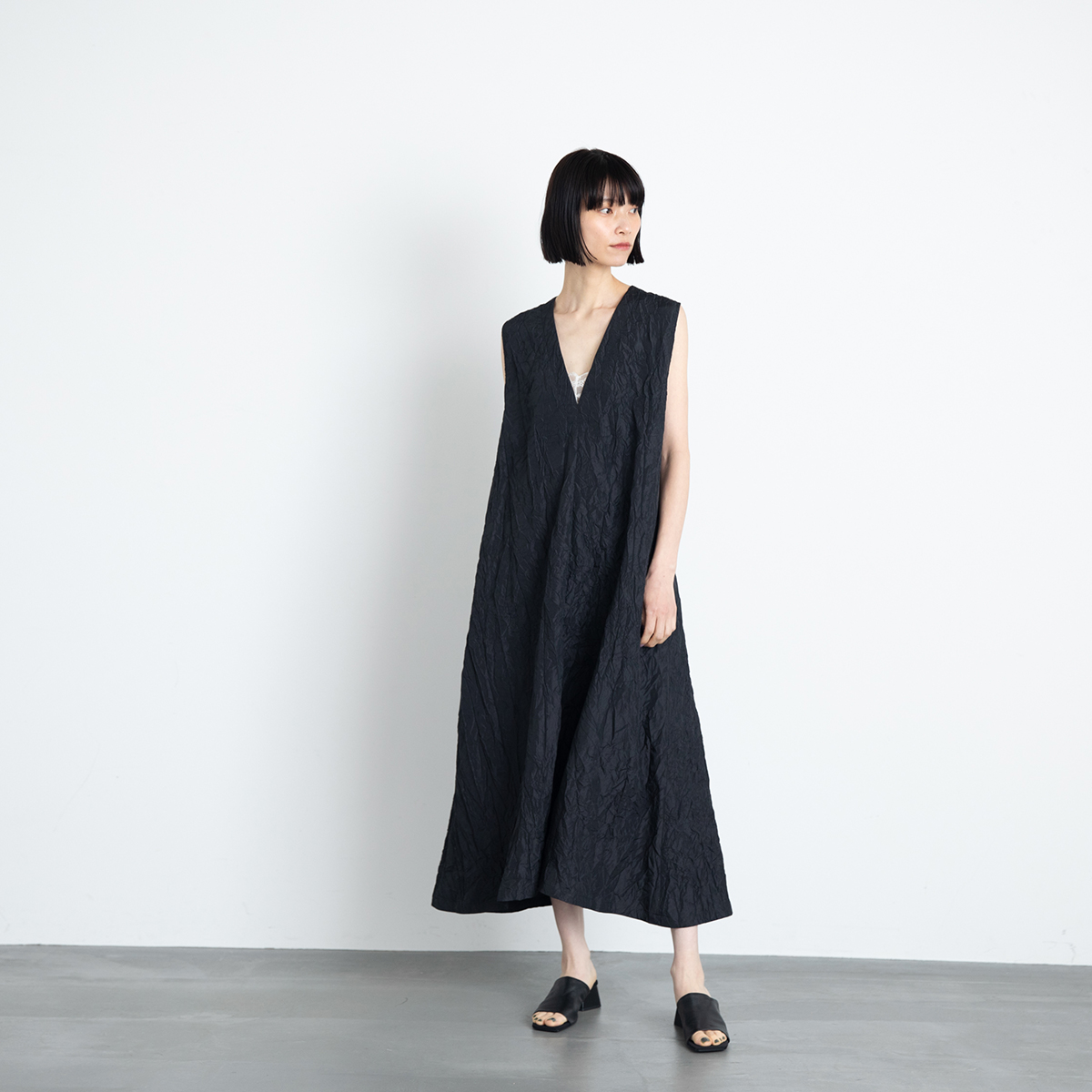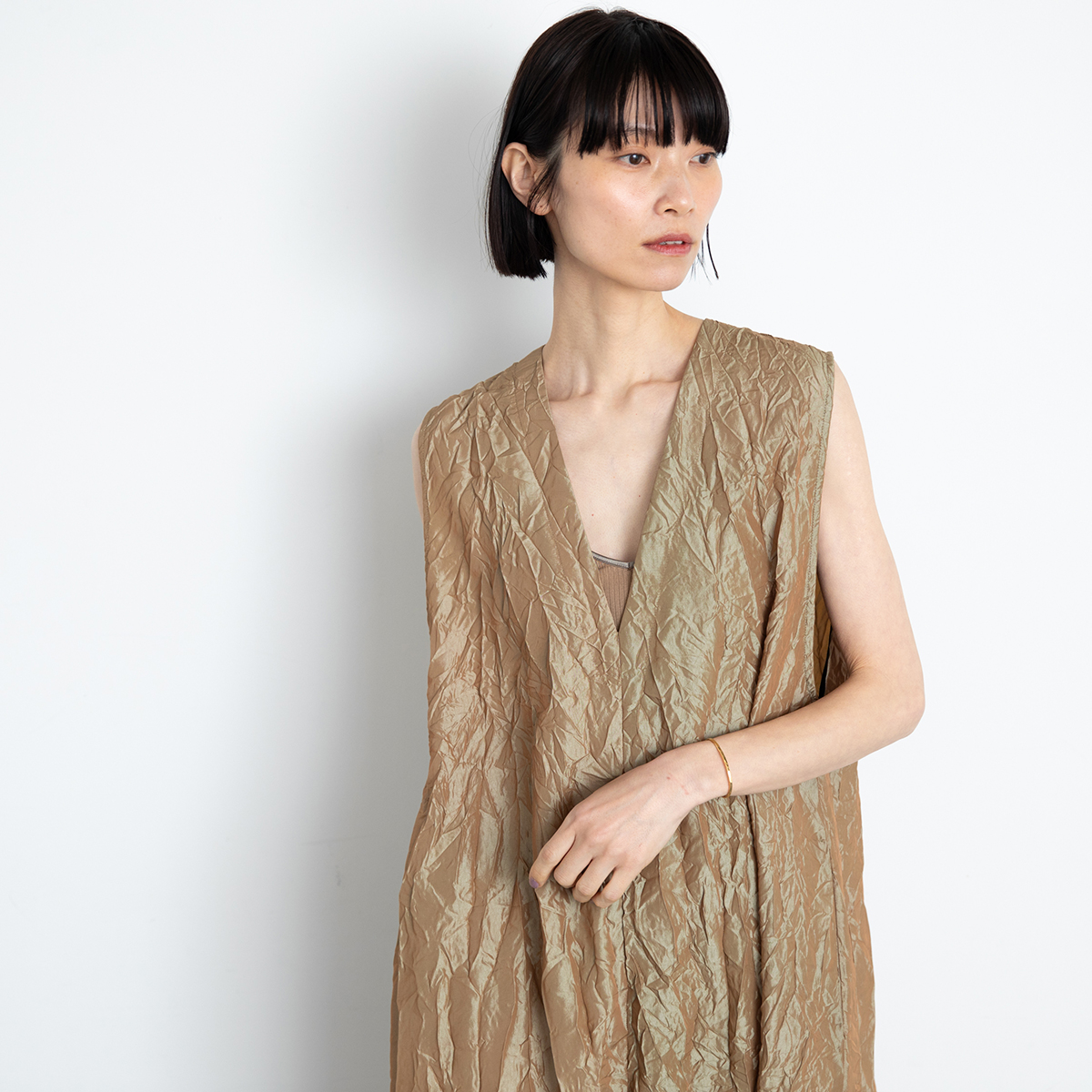 Sleeveless V Wide Dress(Khaki)/Honnete