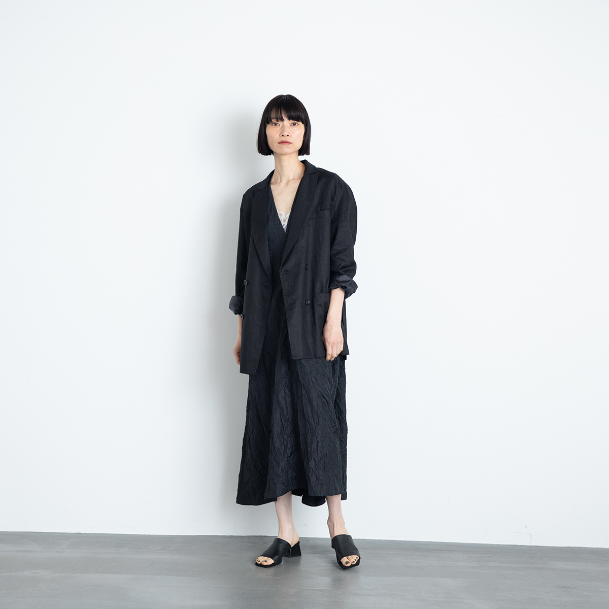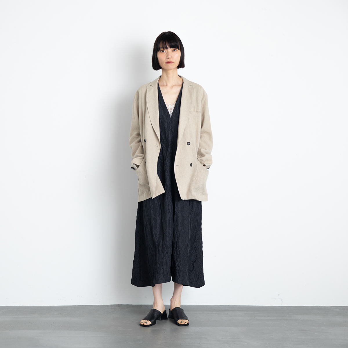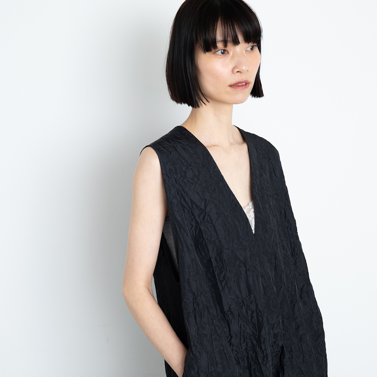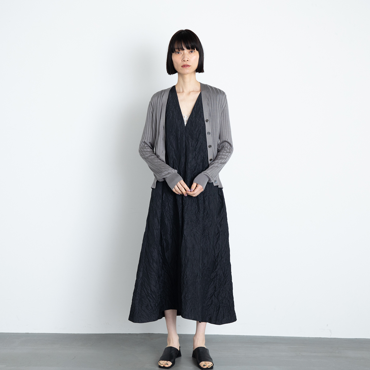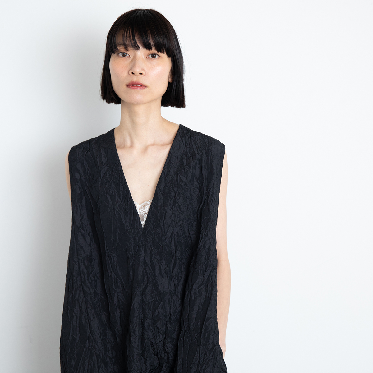 Sleeveless V Wide Dress(Khaki)/Honnete