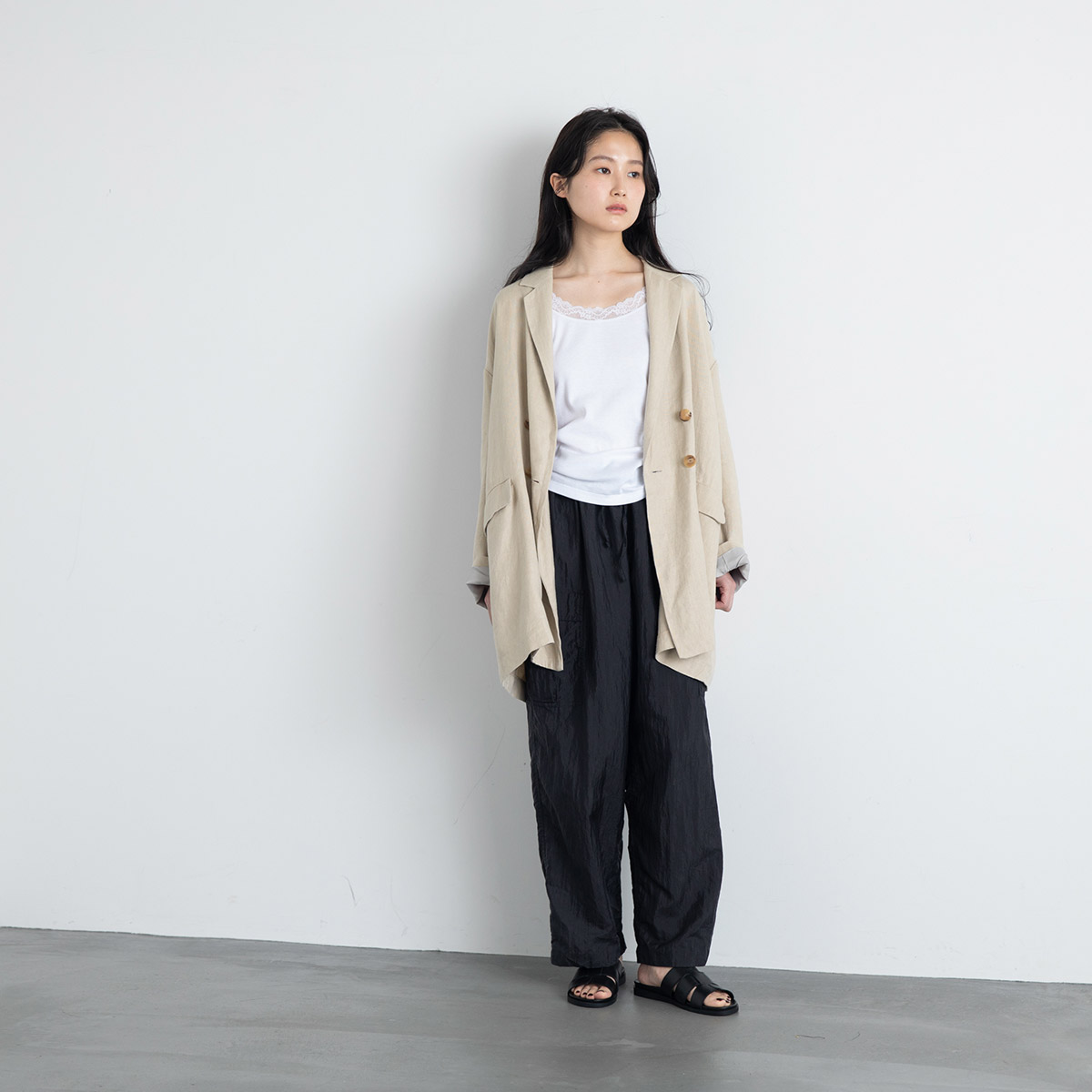 シルク混タフタカーゴパンツ(ブラック・1)/t.yamai paris