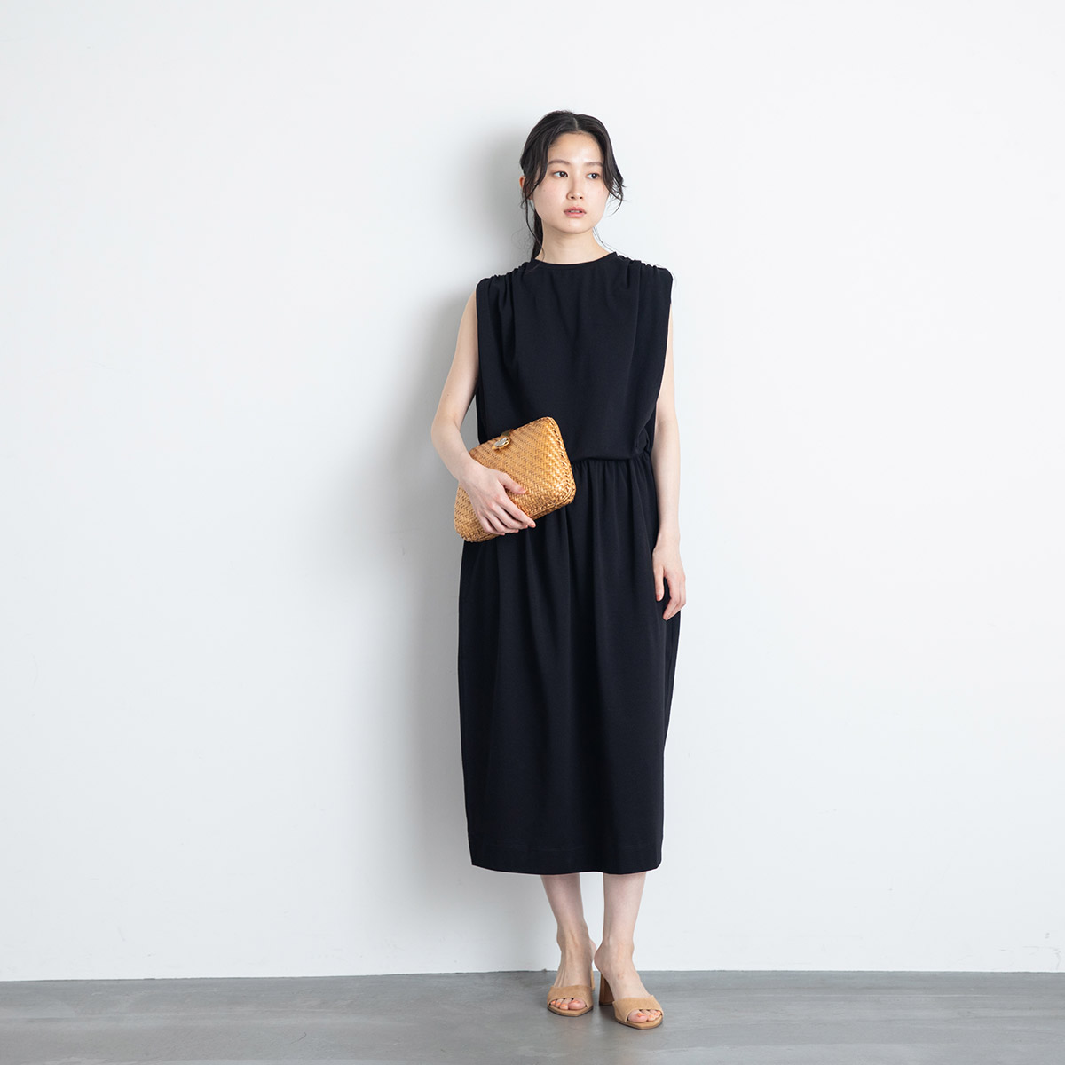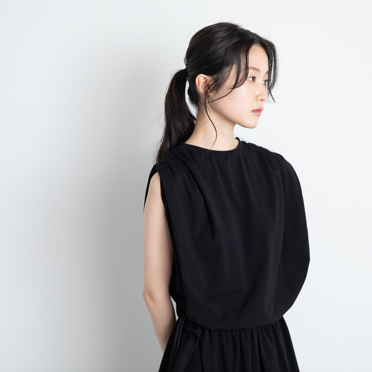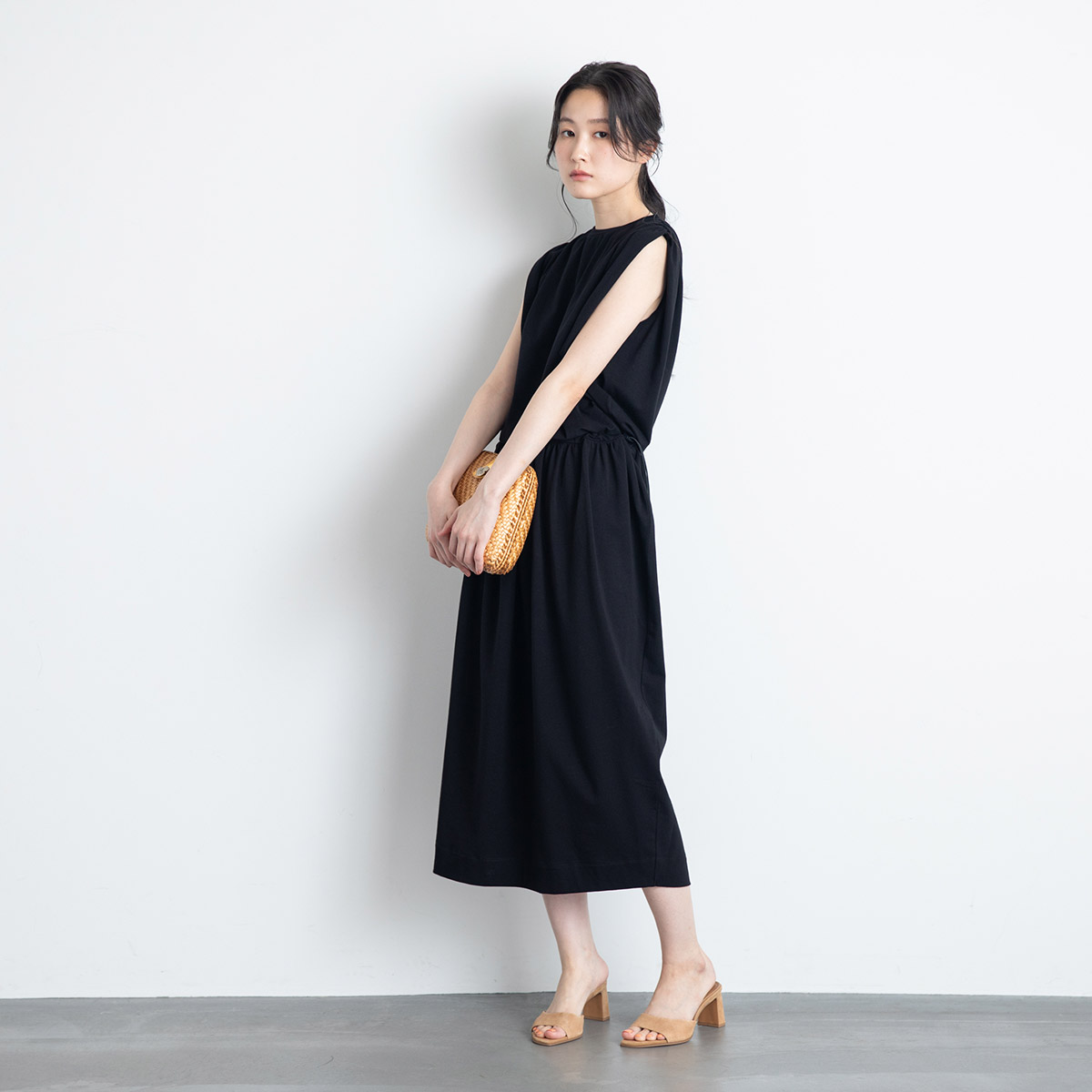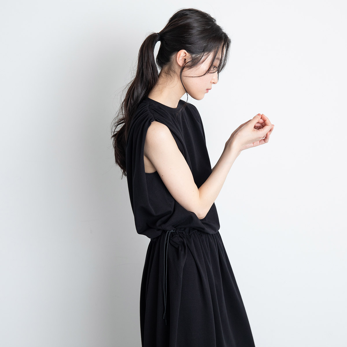 オーガニックコットン ショルダーギャザーワンピース(ブラック)/SLOANE