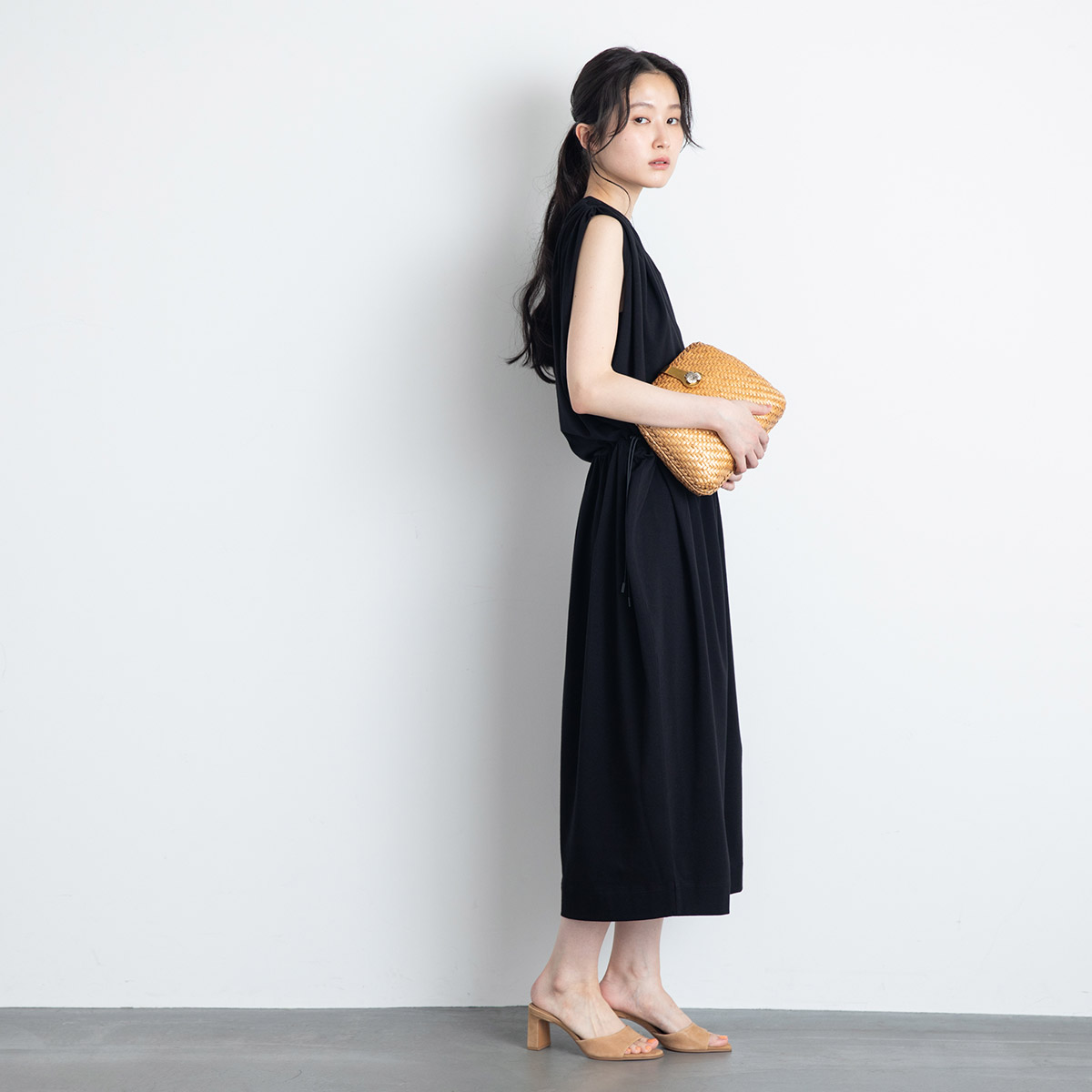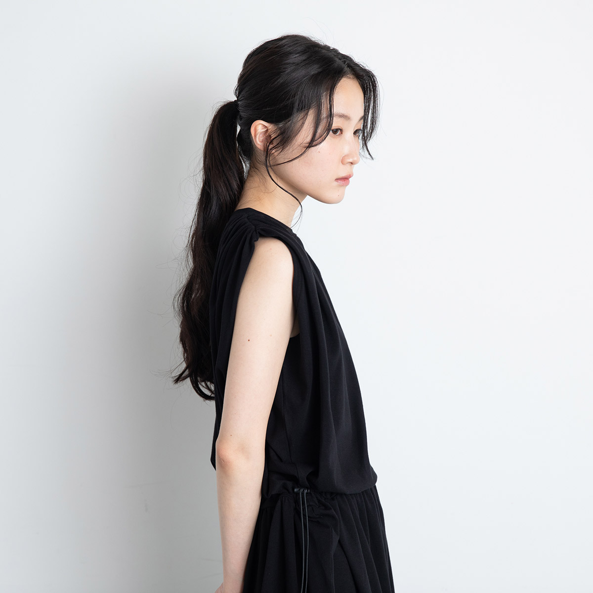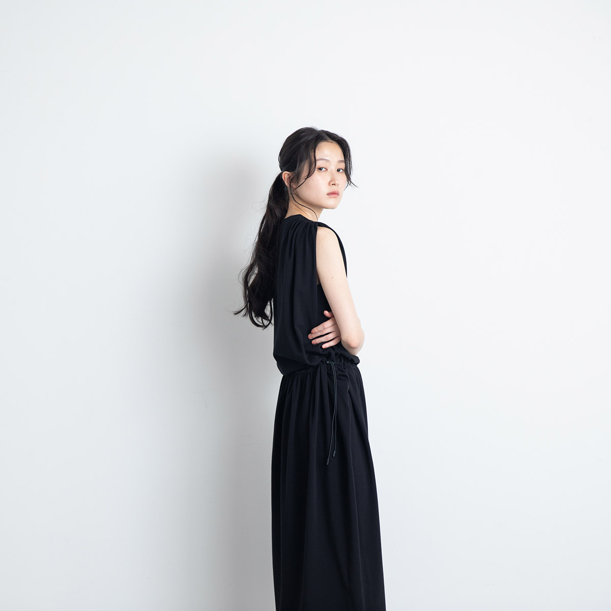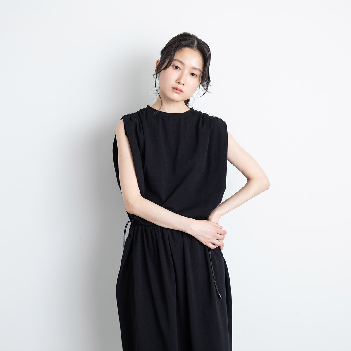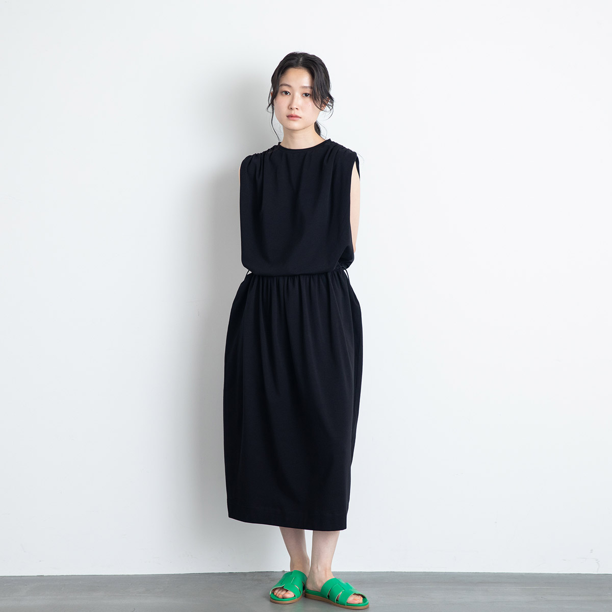 オーガニックコットン ショルダーギャザーワンピース(ブラック)/SLOANE