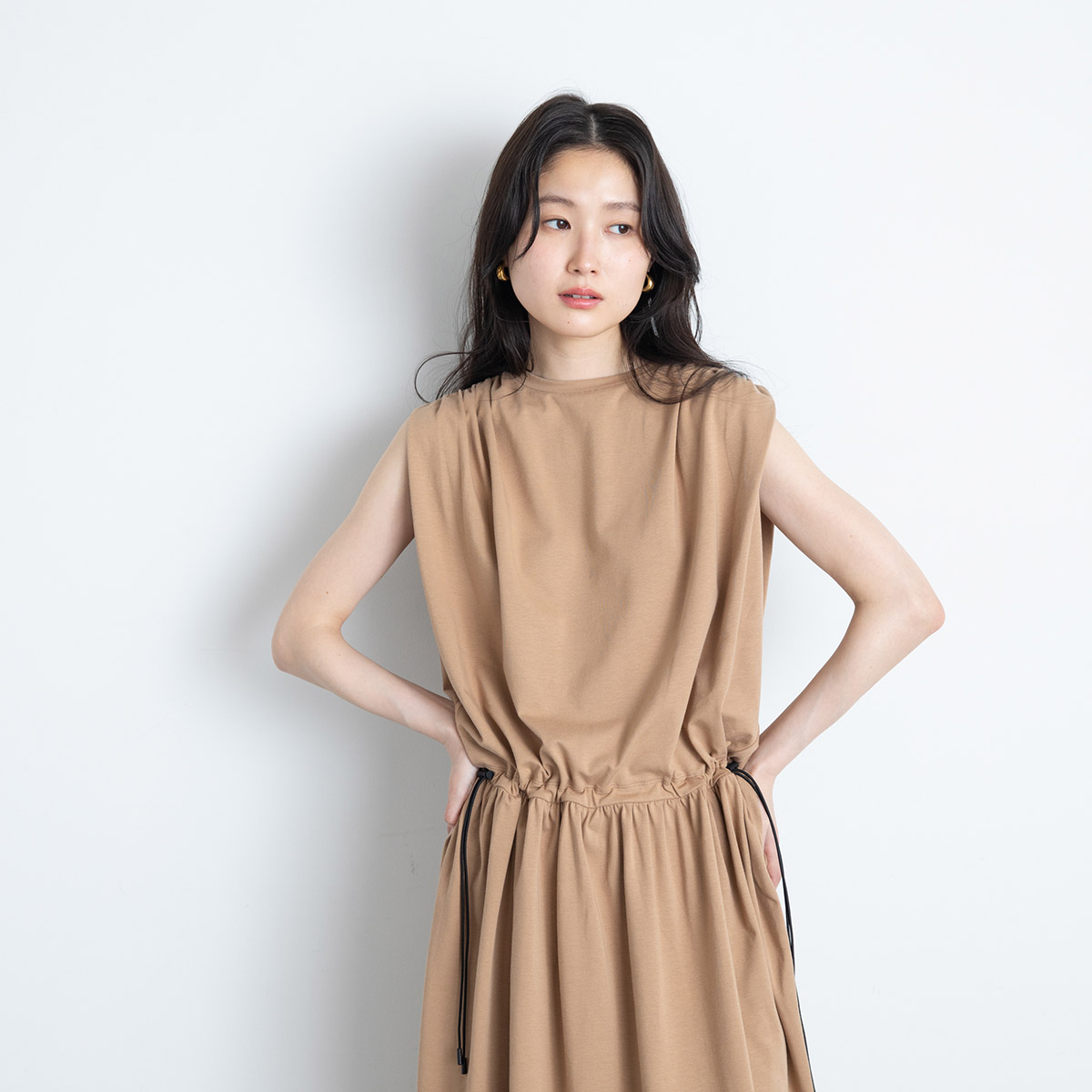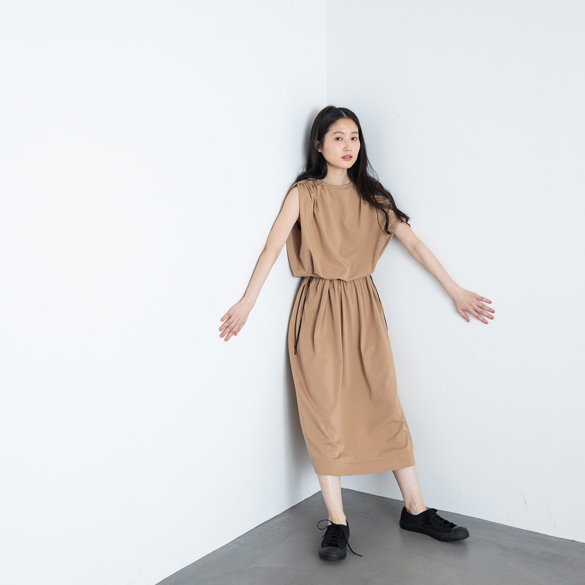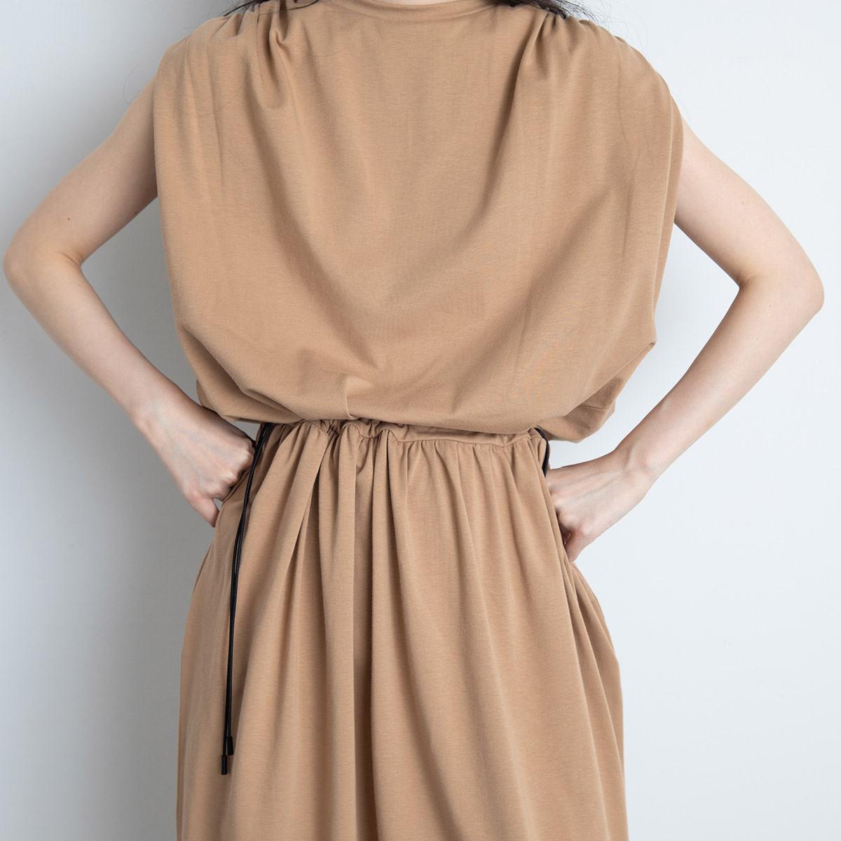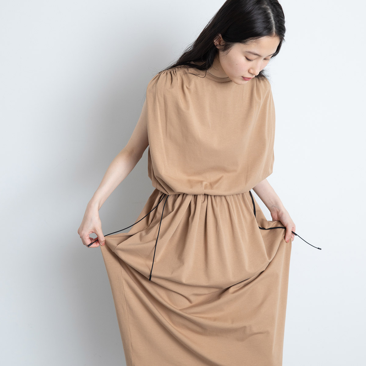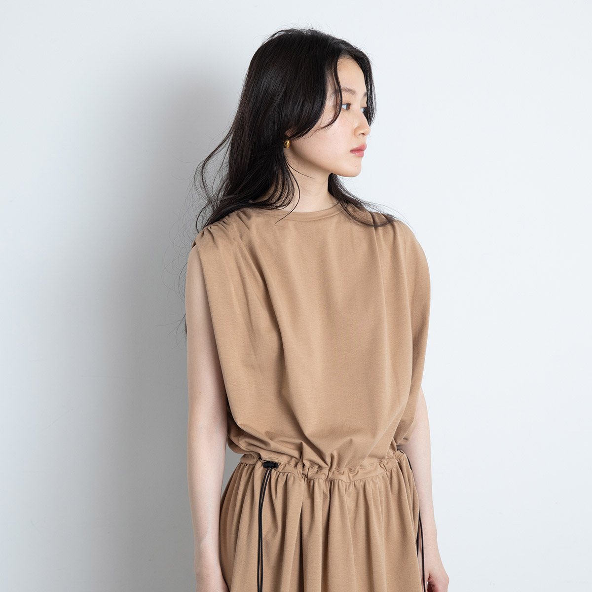 オーガニックコットン ショルダーギャザーワンピース(ベージュ)/SLOANE