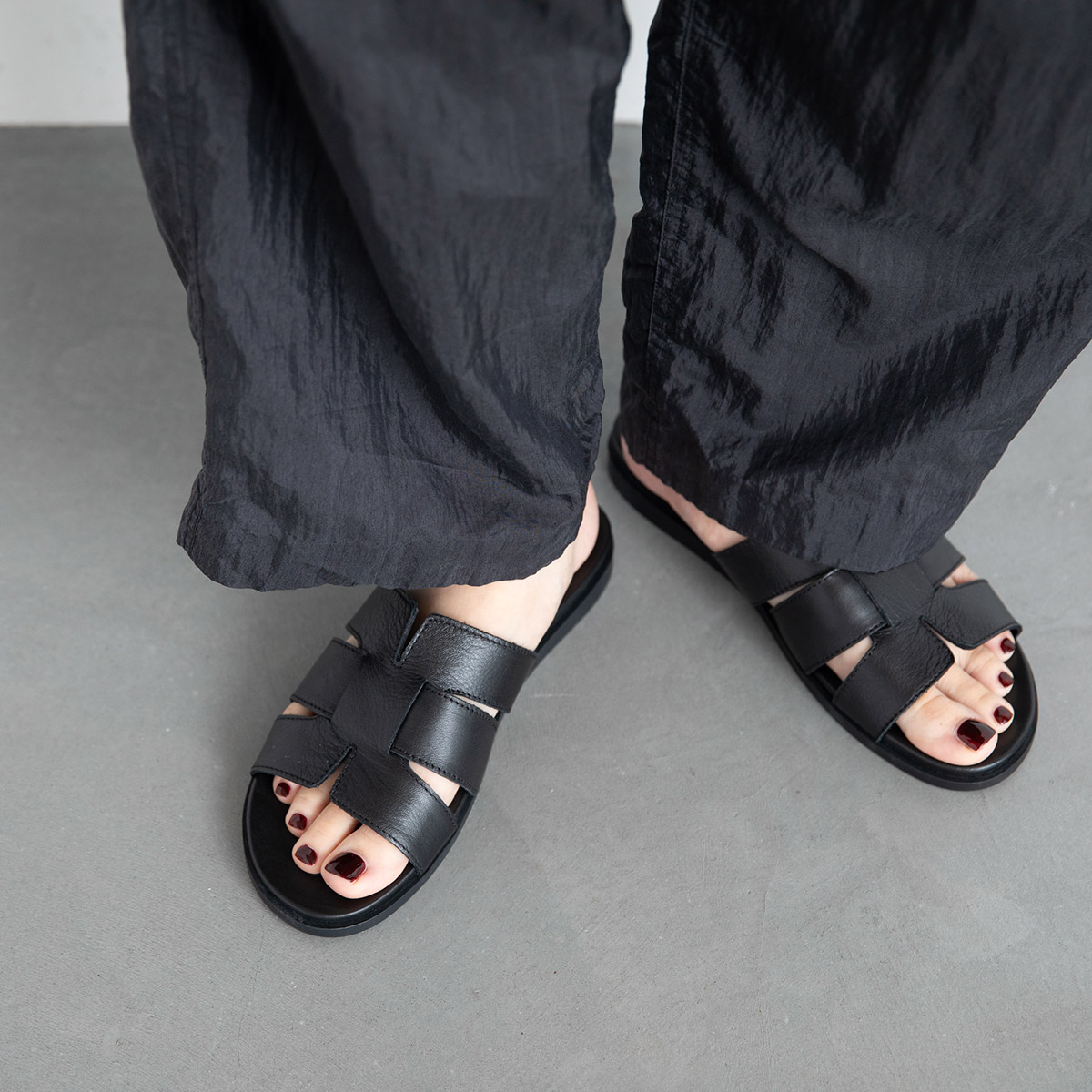 今回発売するレザーフラットサンダルは