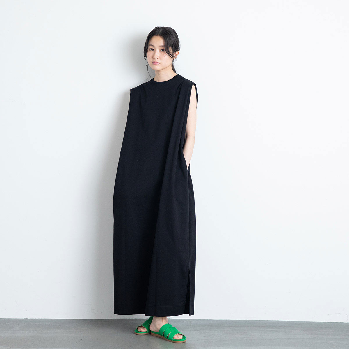 コットン タックショルダーワンピース(ブラック)/SLOANE