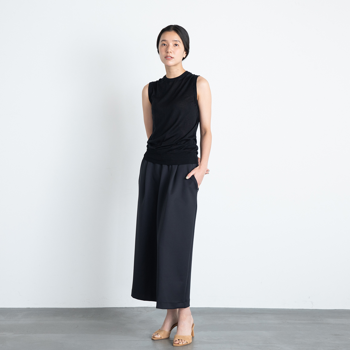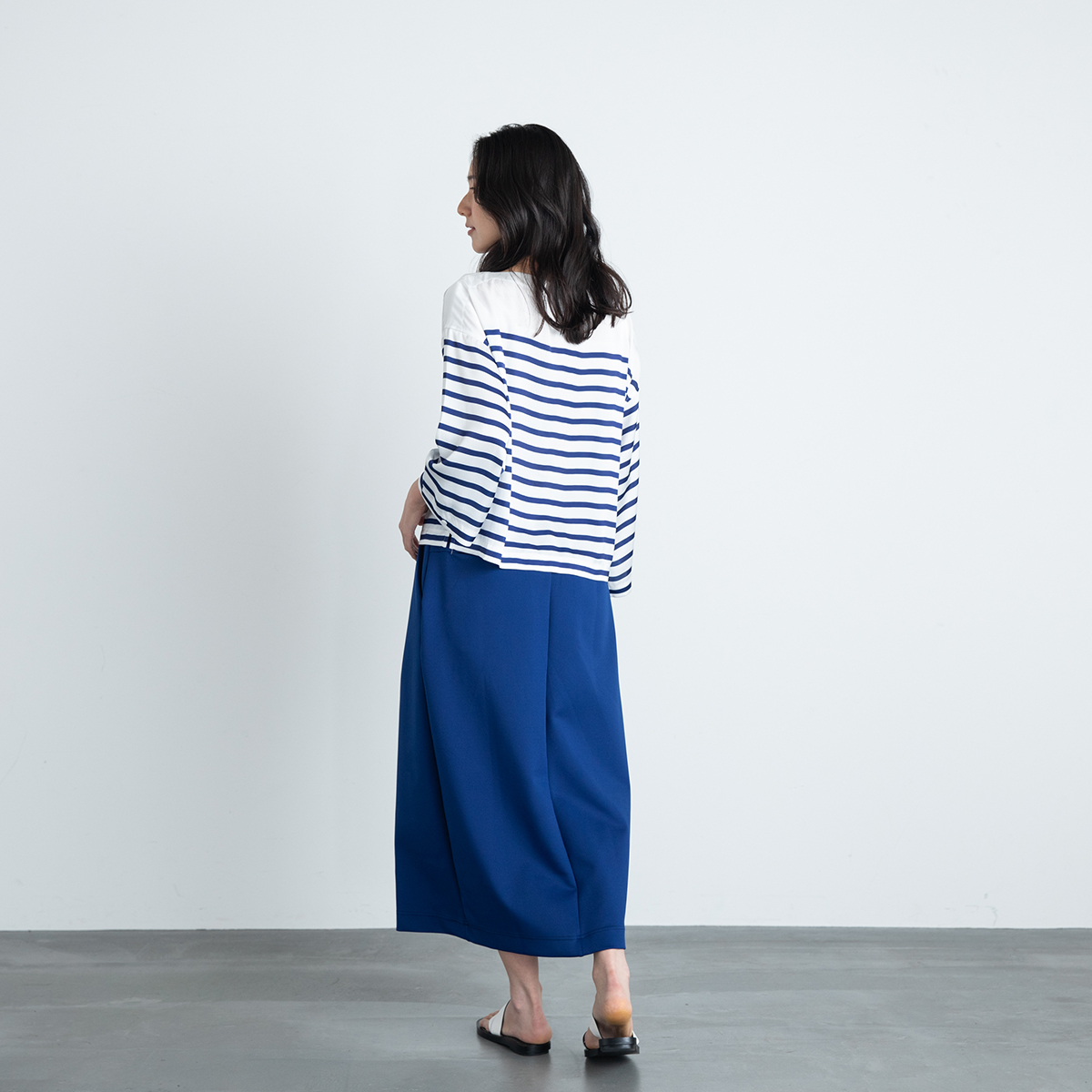 動くごとに生まれる美しいドレープが特徴。