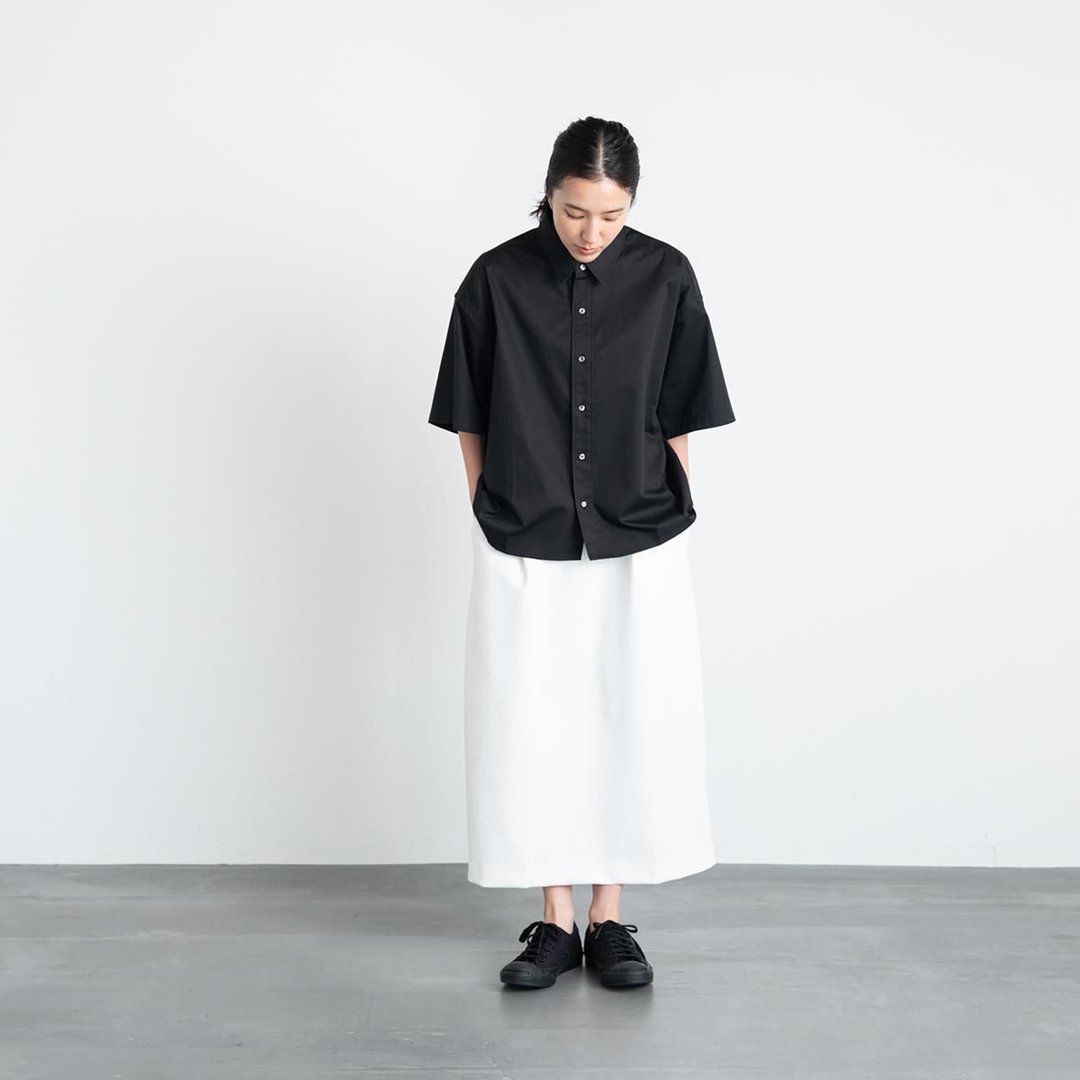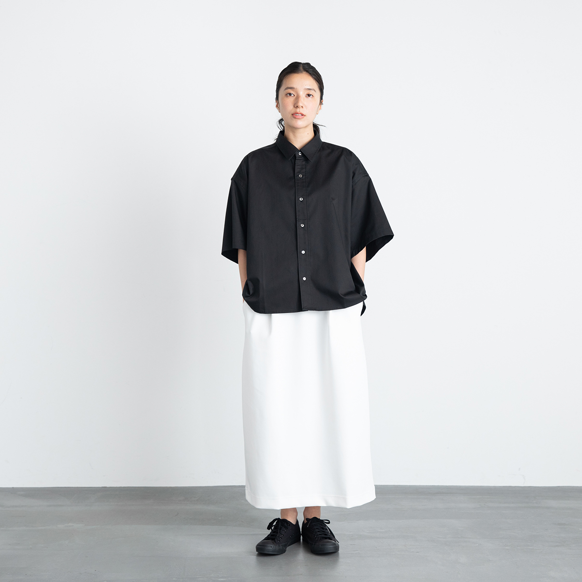 ツイルワイドシャツ(ブラック)/Le pivot