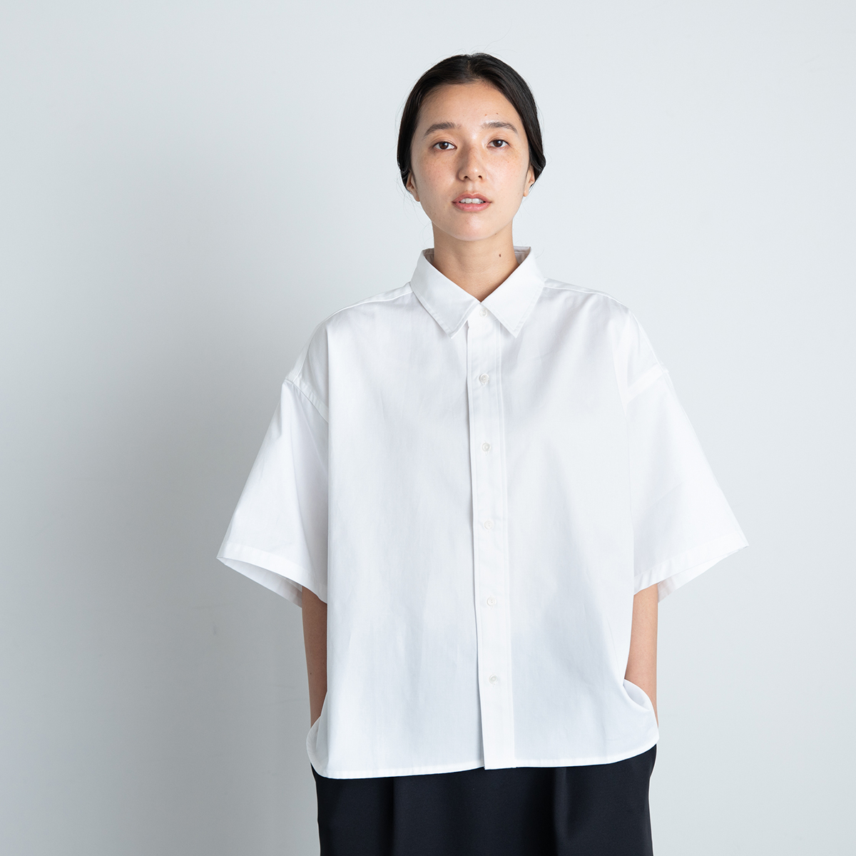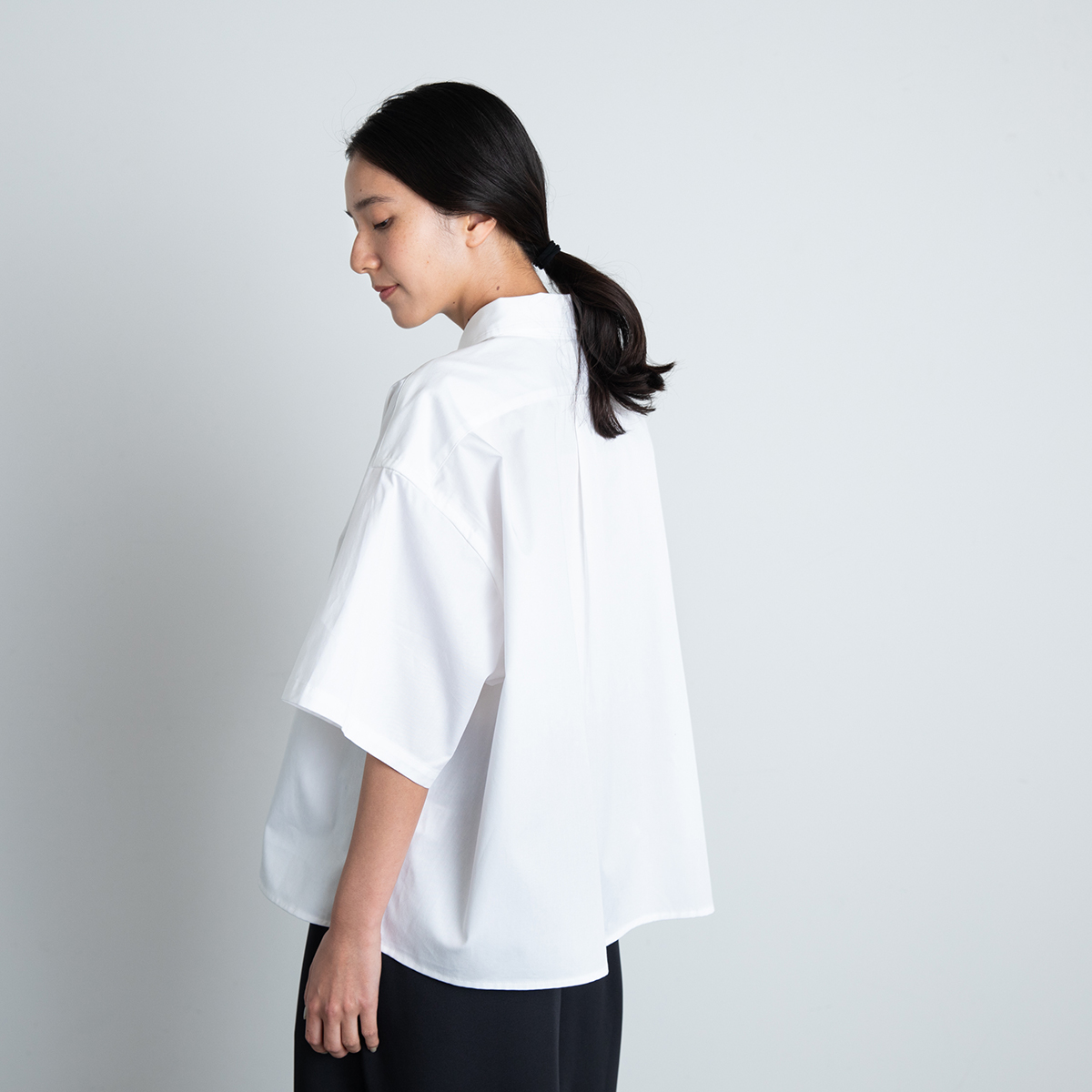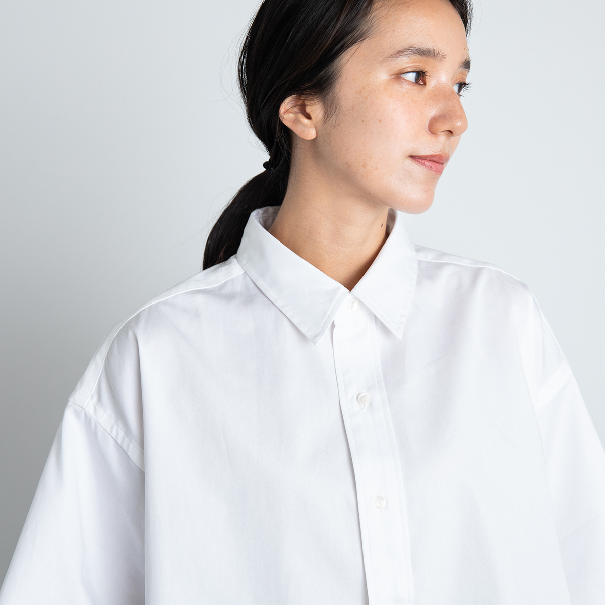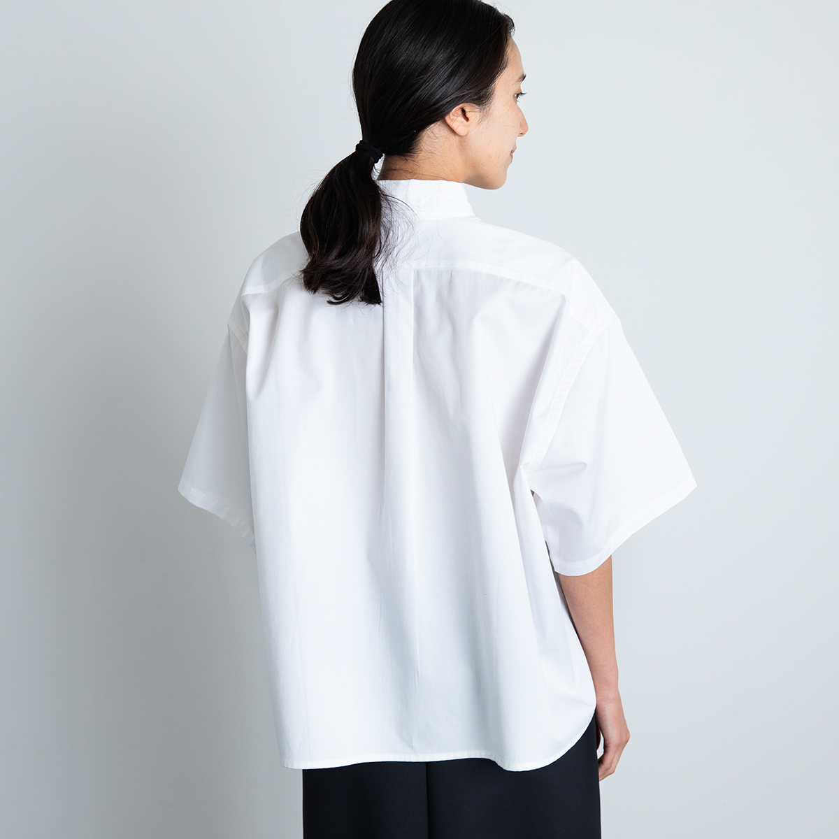 メンズシャツの袖つけをうんと広くしたワイドなフォルム。