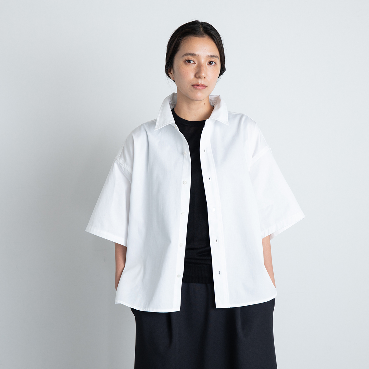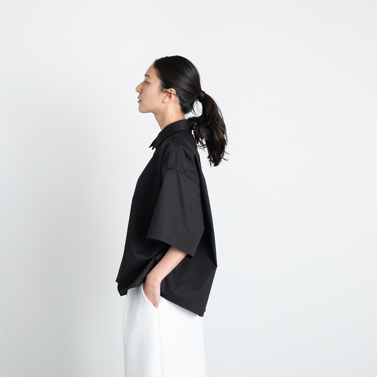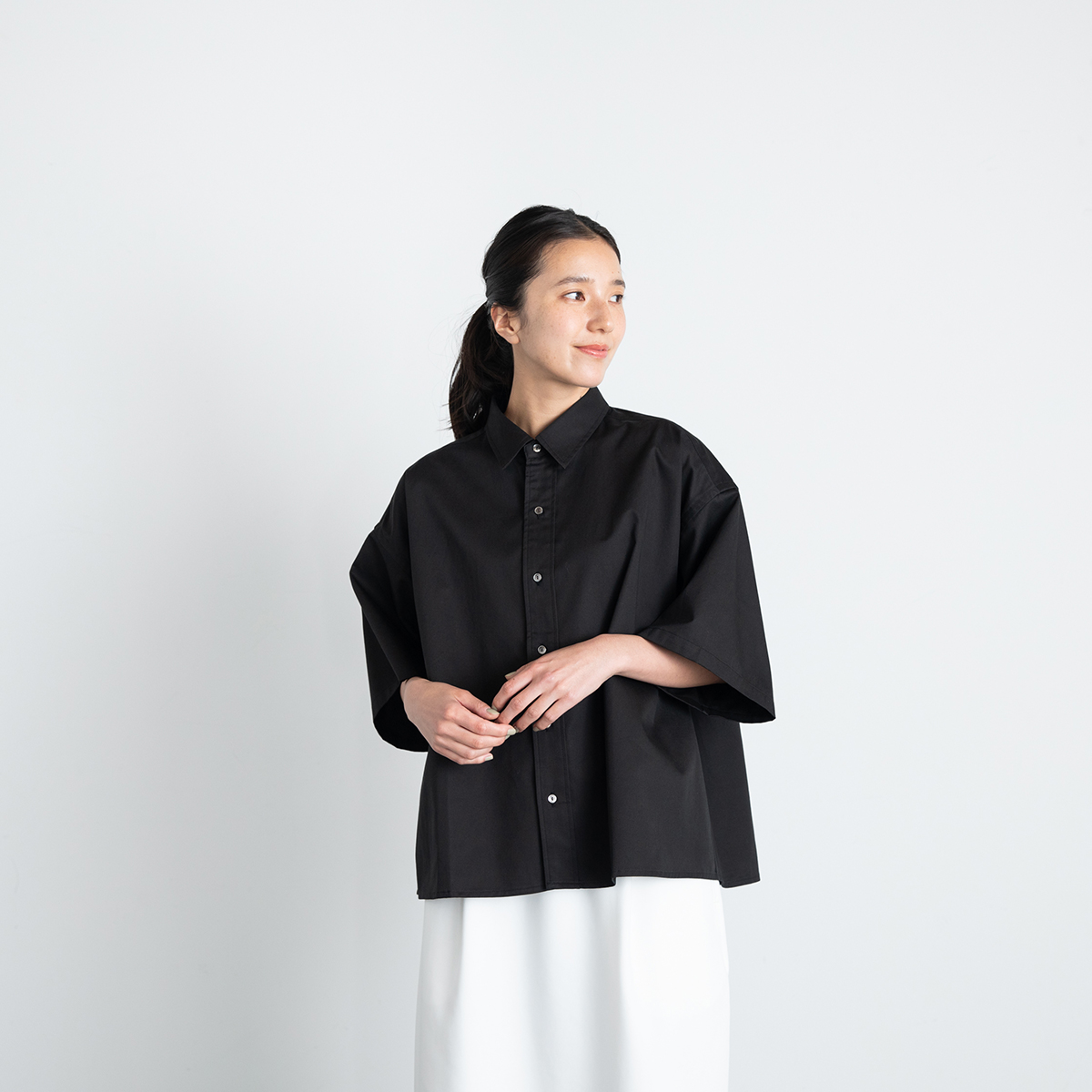 ツイルワイドシャツ(ブラック)/Le pivot