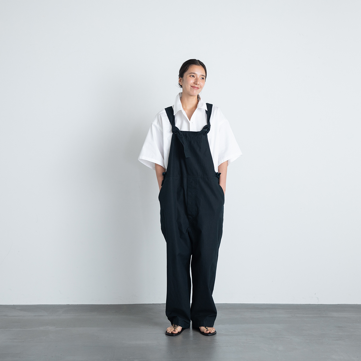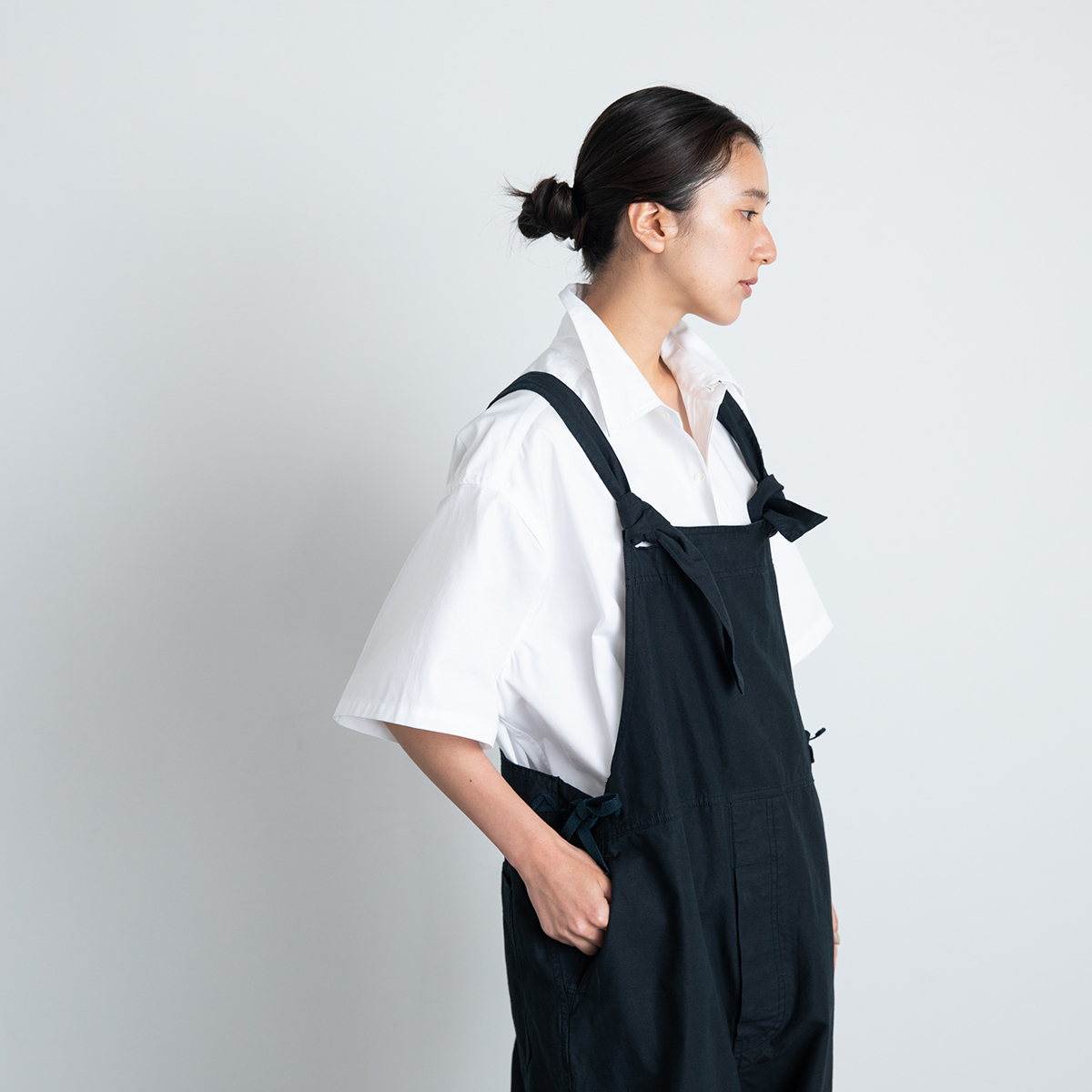 コットンリネンサロペット(ブラック)/JOHNBULL