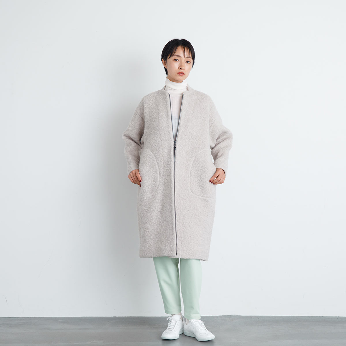 ループインレー圧縮ニットコート(オフホワイト)/RaPPELER