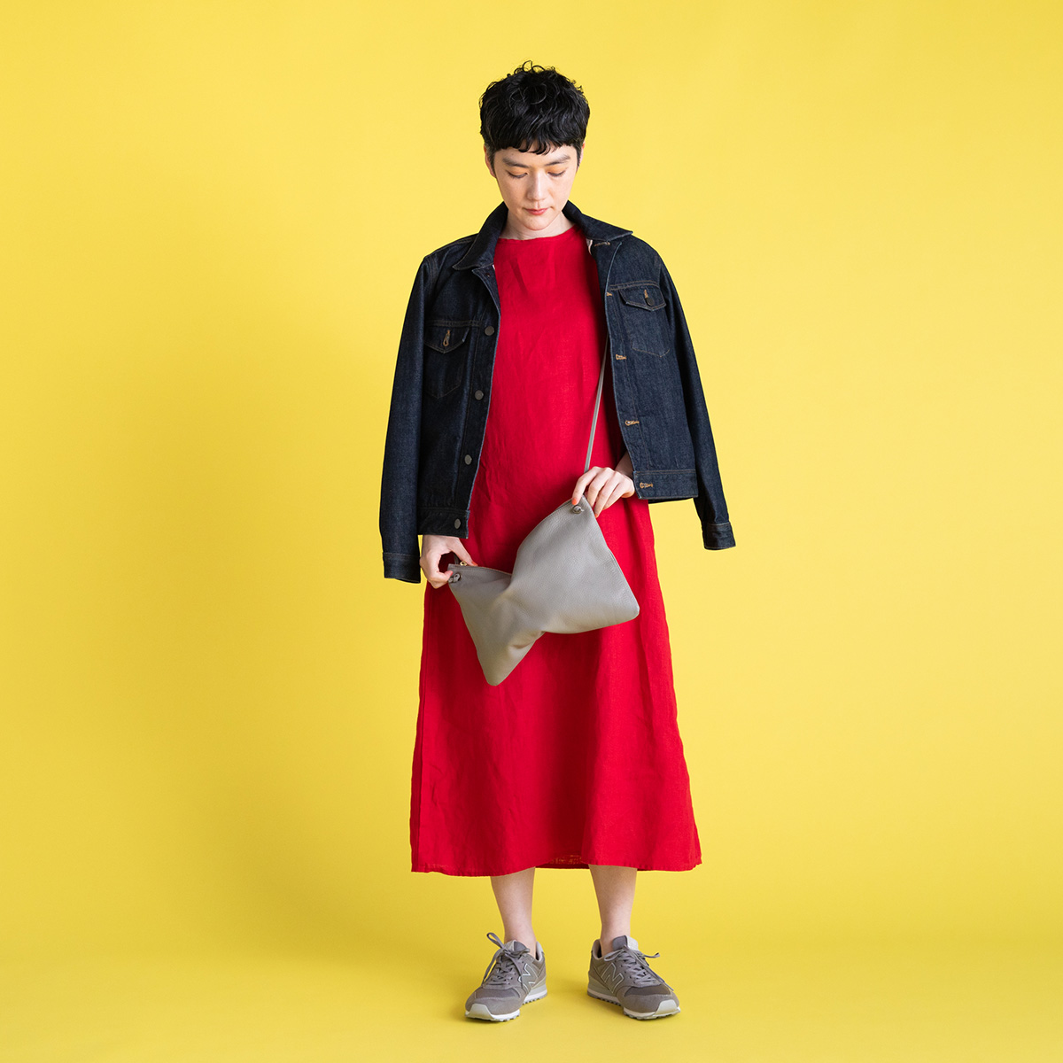 斜めがけしたり、またはヒモを結んで肩がけしたりと、