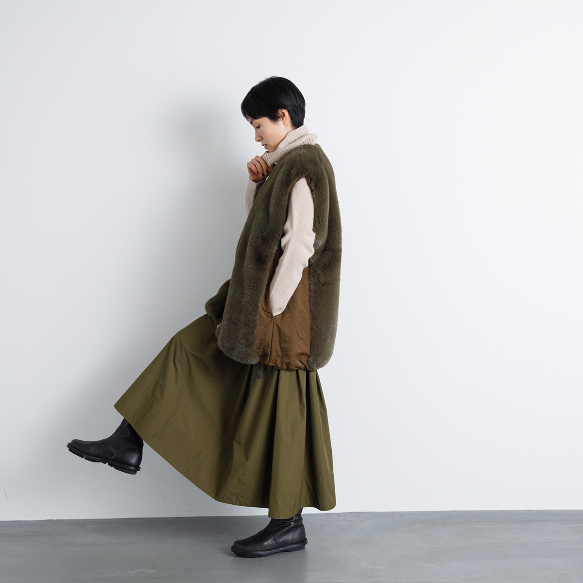 両脇部分は生地を切り替えよりモードな雰囲気に。