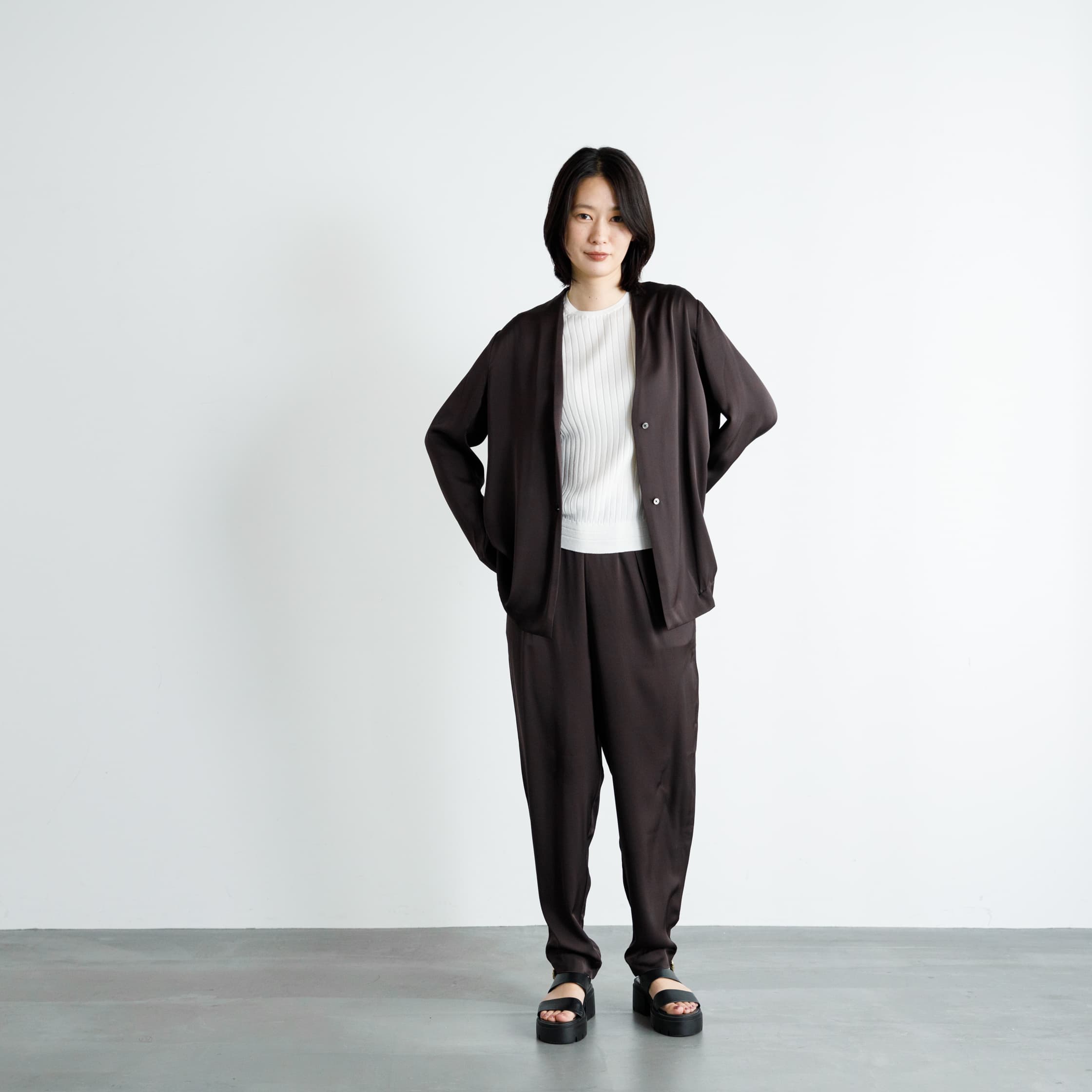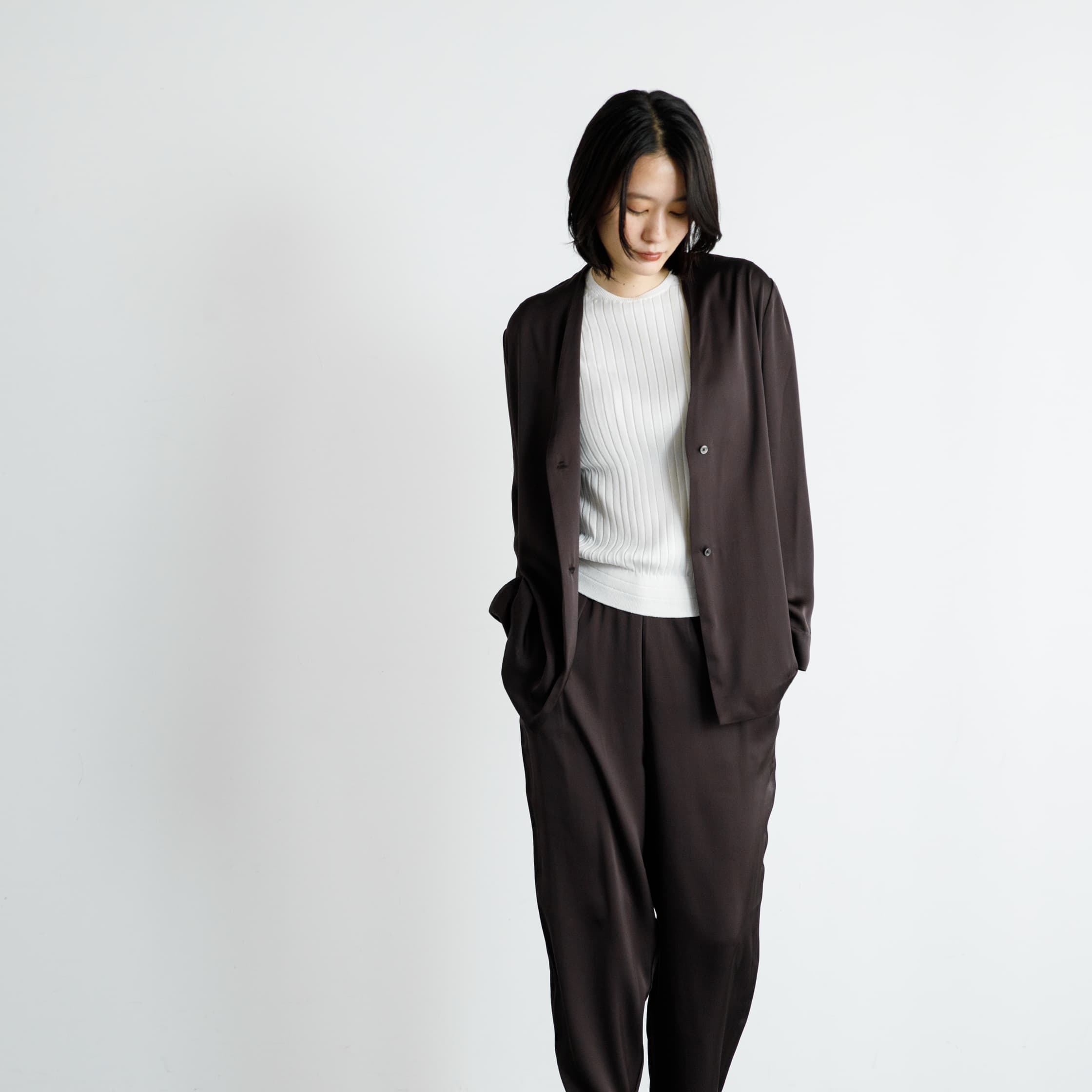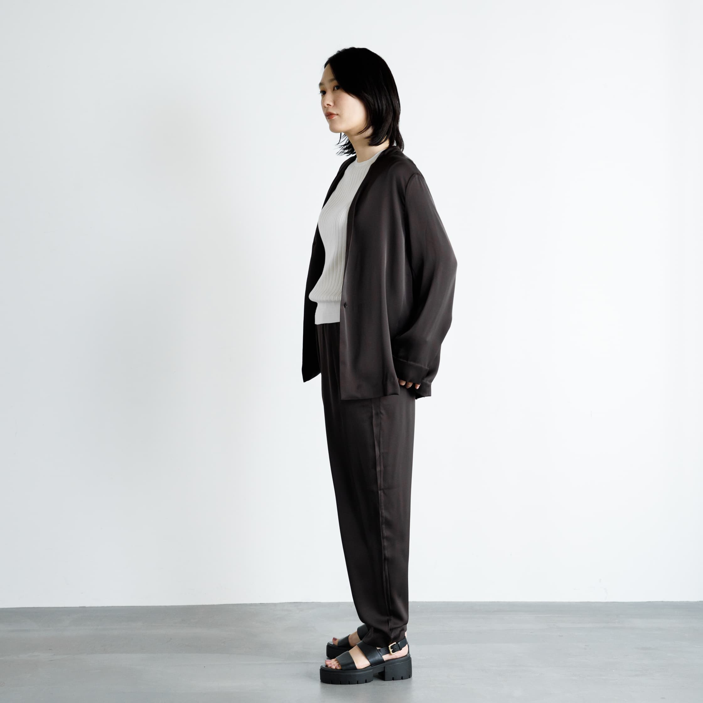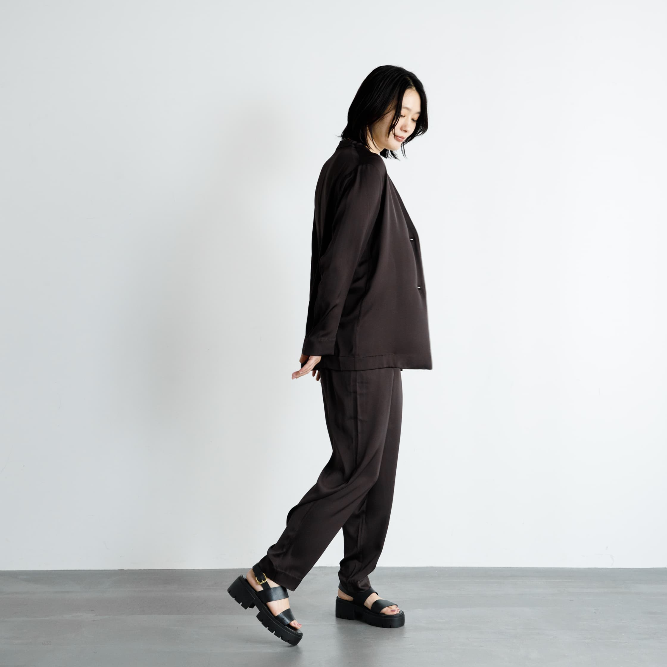 セットアップとしての着こなしもステキです。