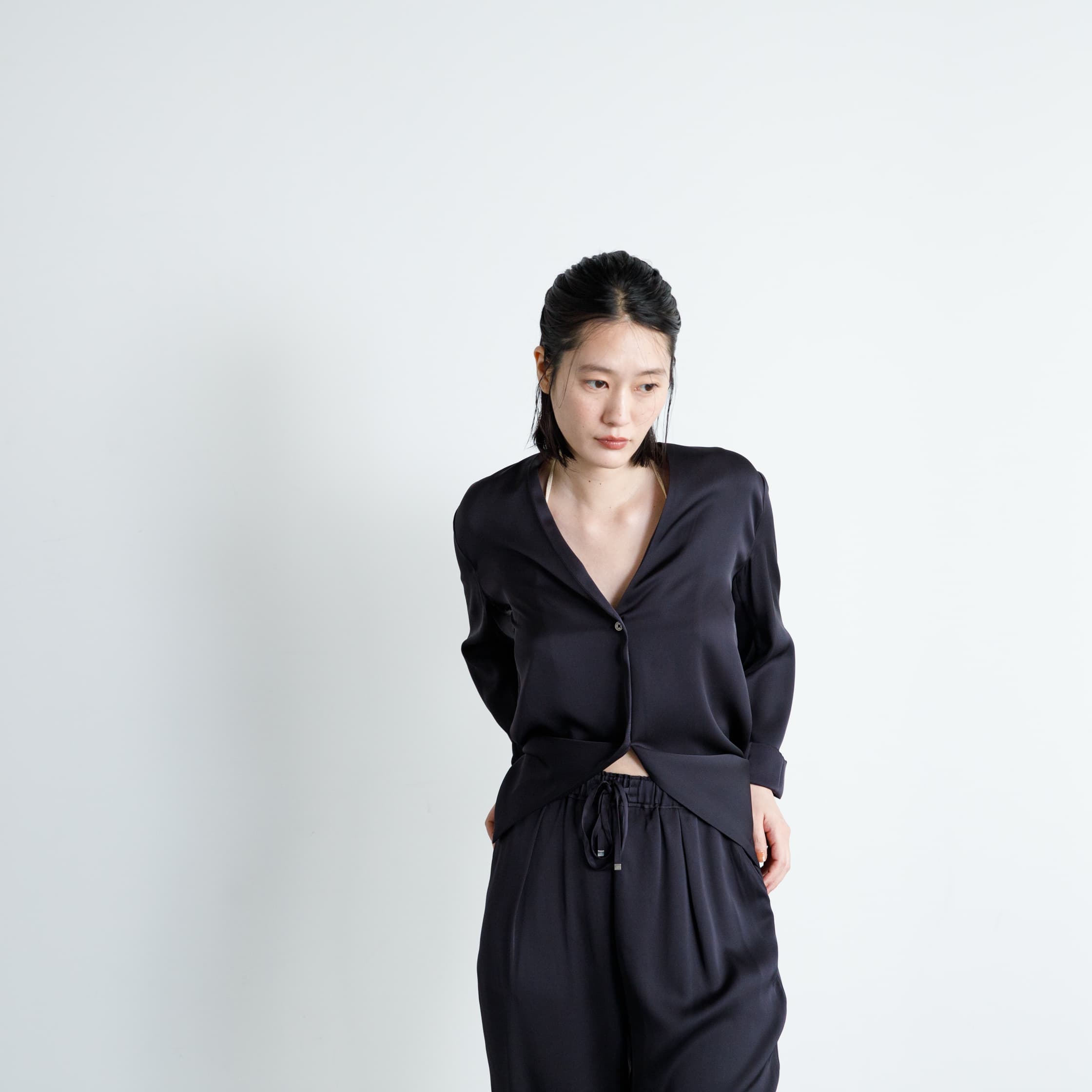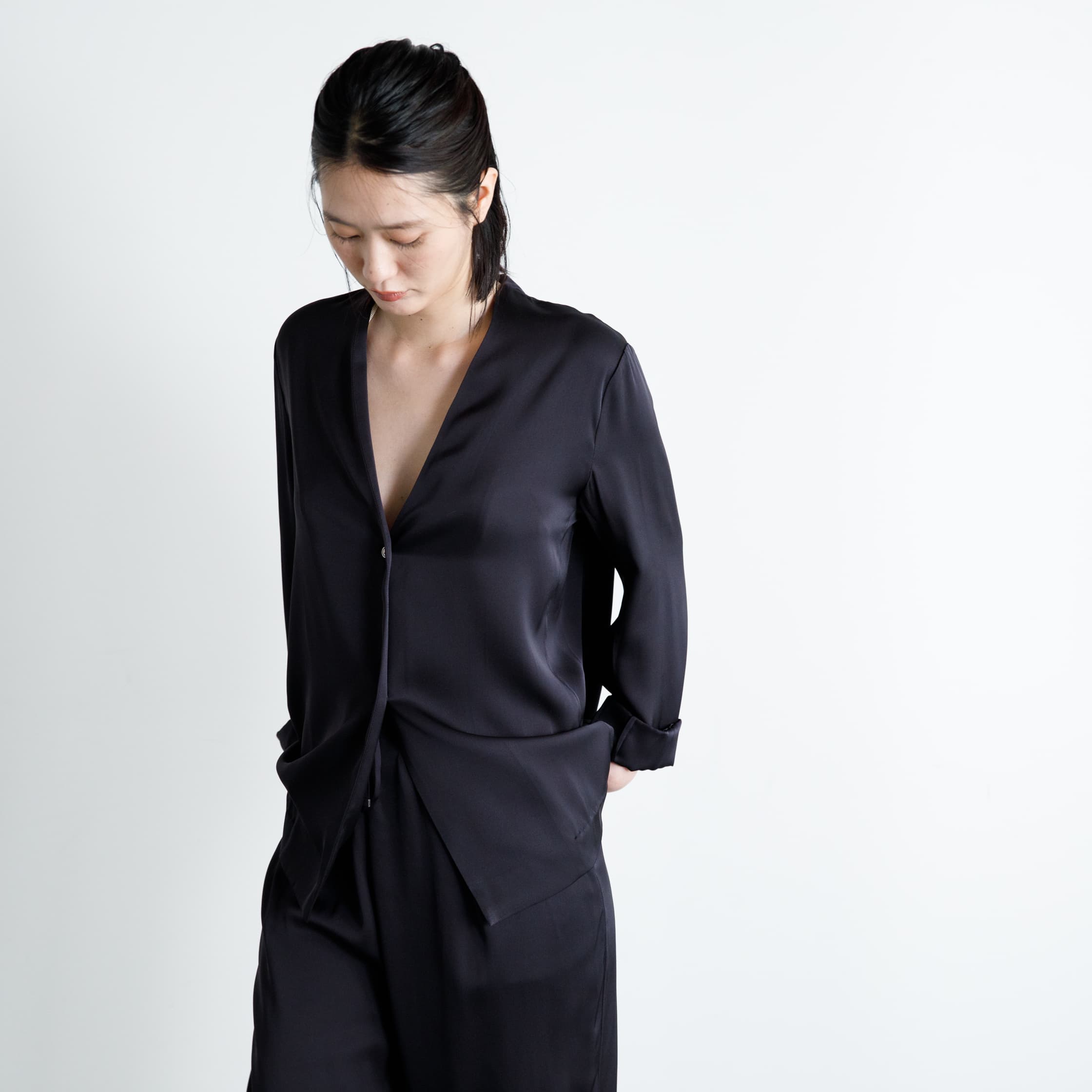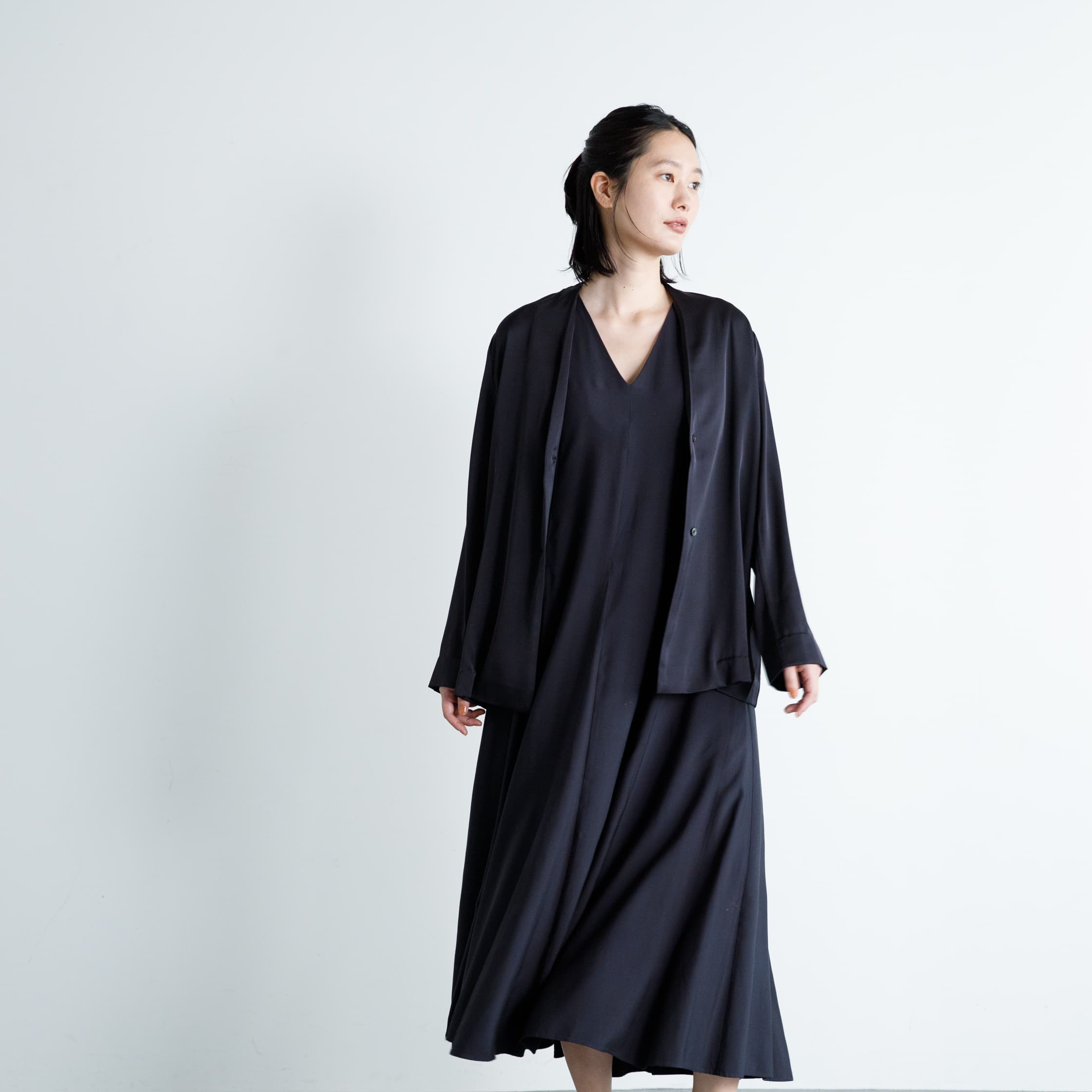 シルクシャツジャケット(インクブラック)/DRESS HERSELF