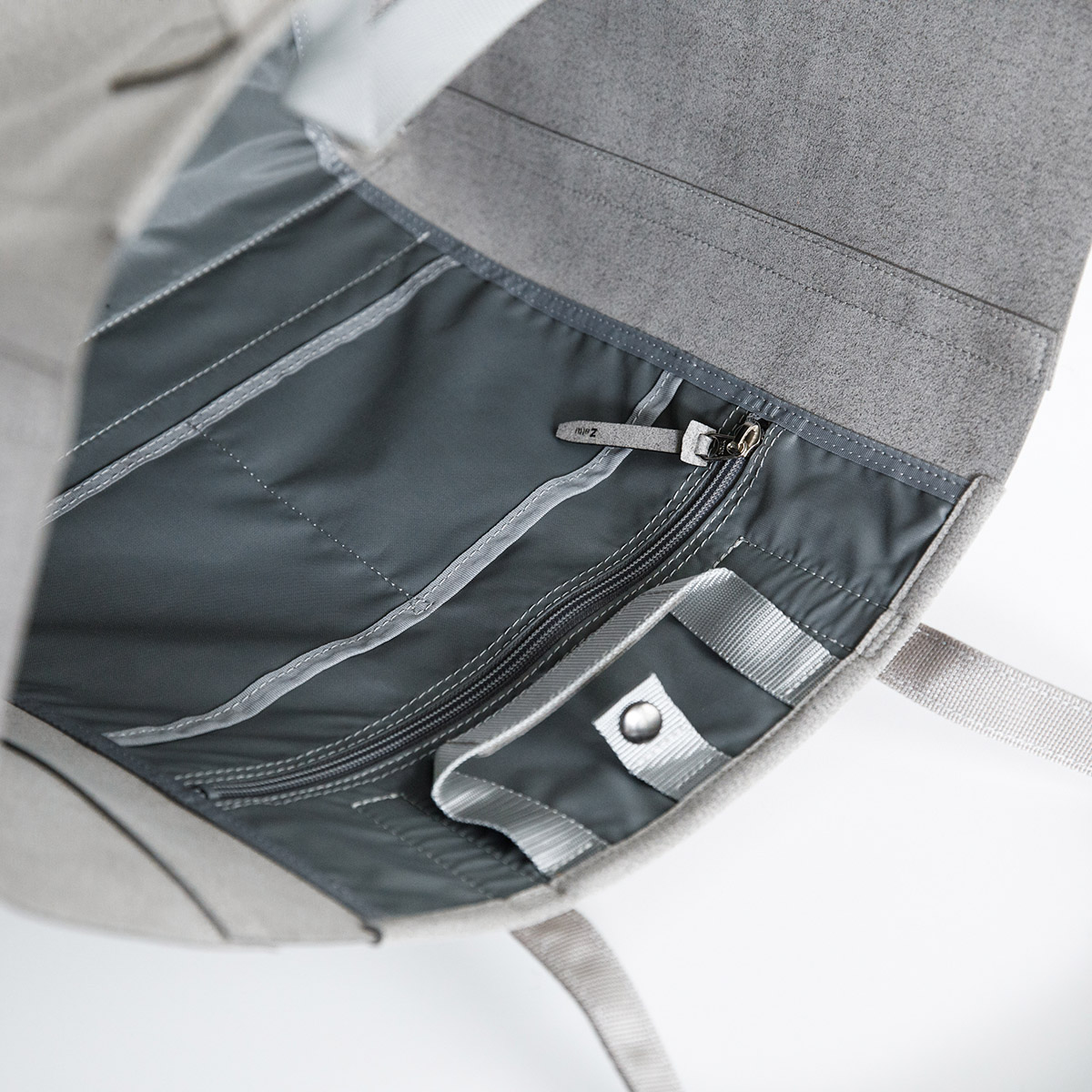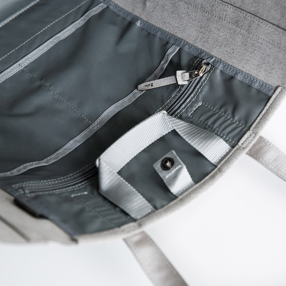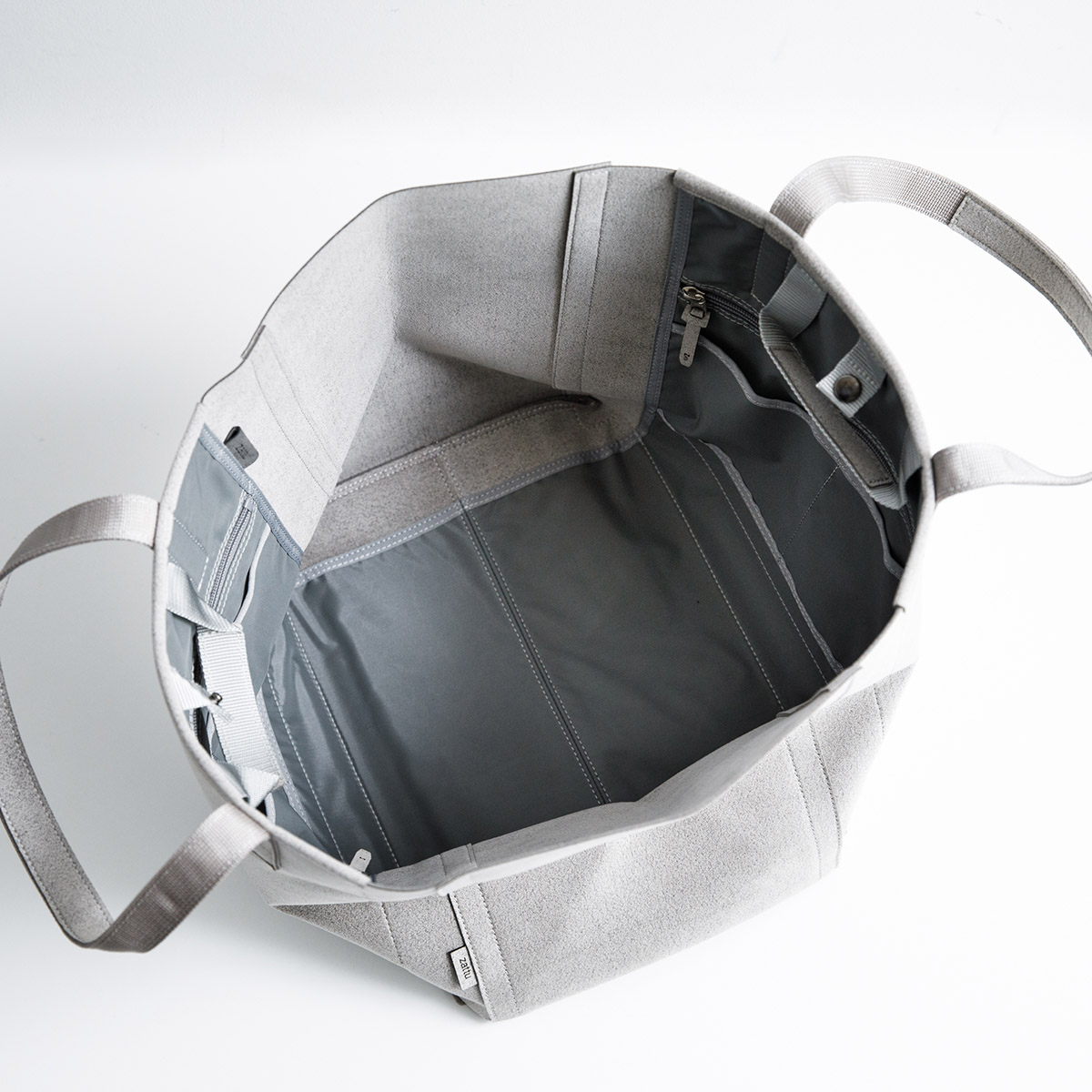 ・zattuのポリエステル・マイクロファイバースエード素材のバッグは