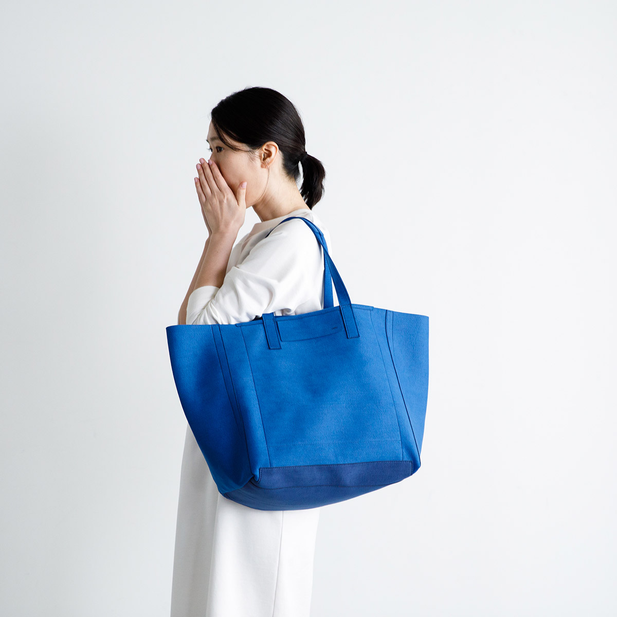マチが広めの大きい舟形トートですが、