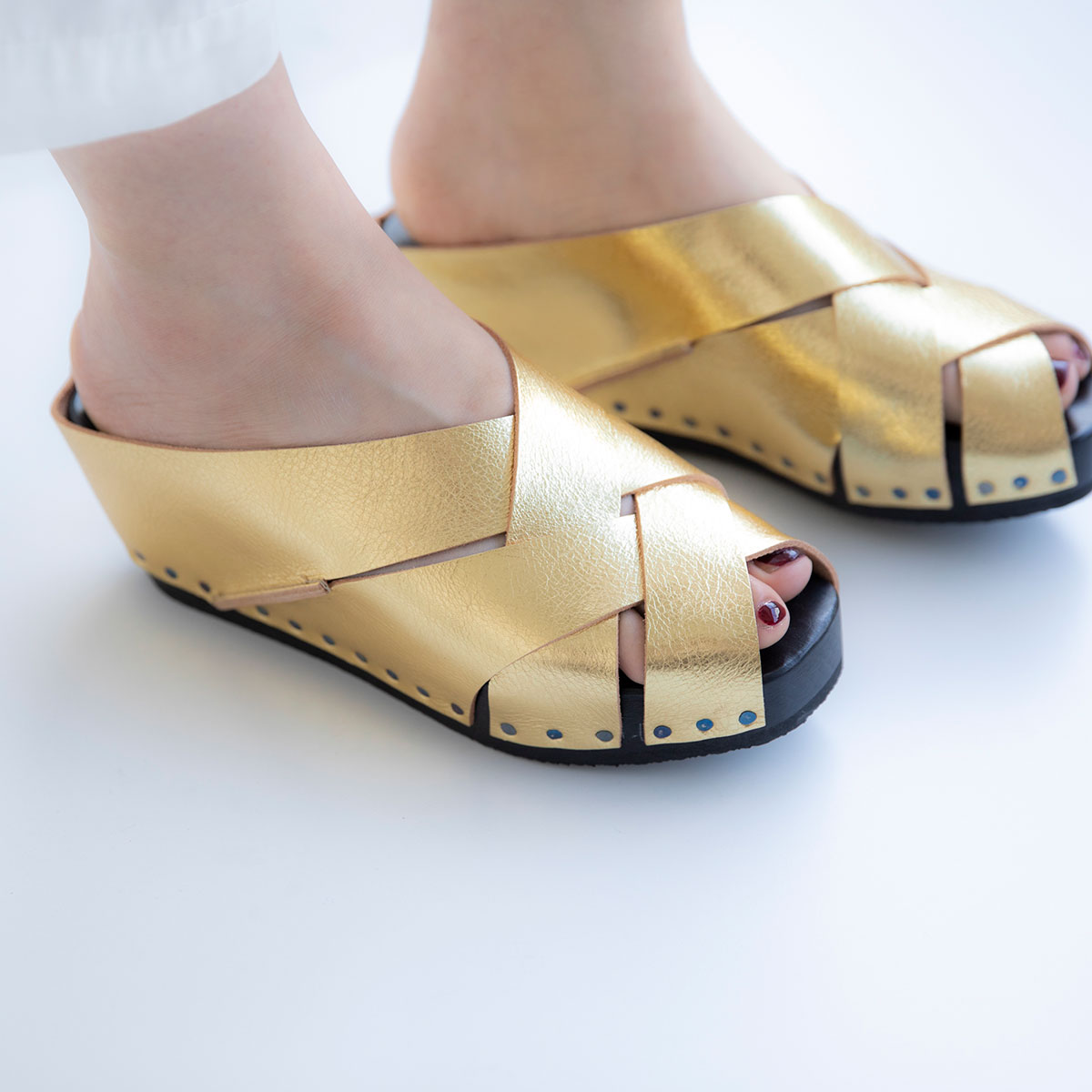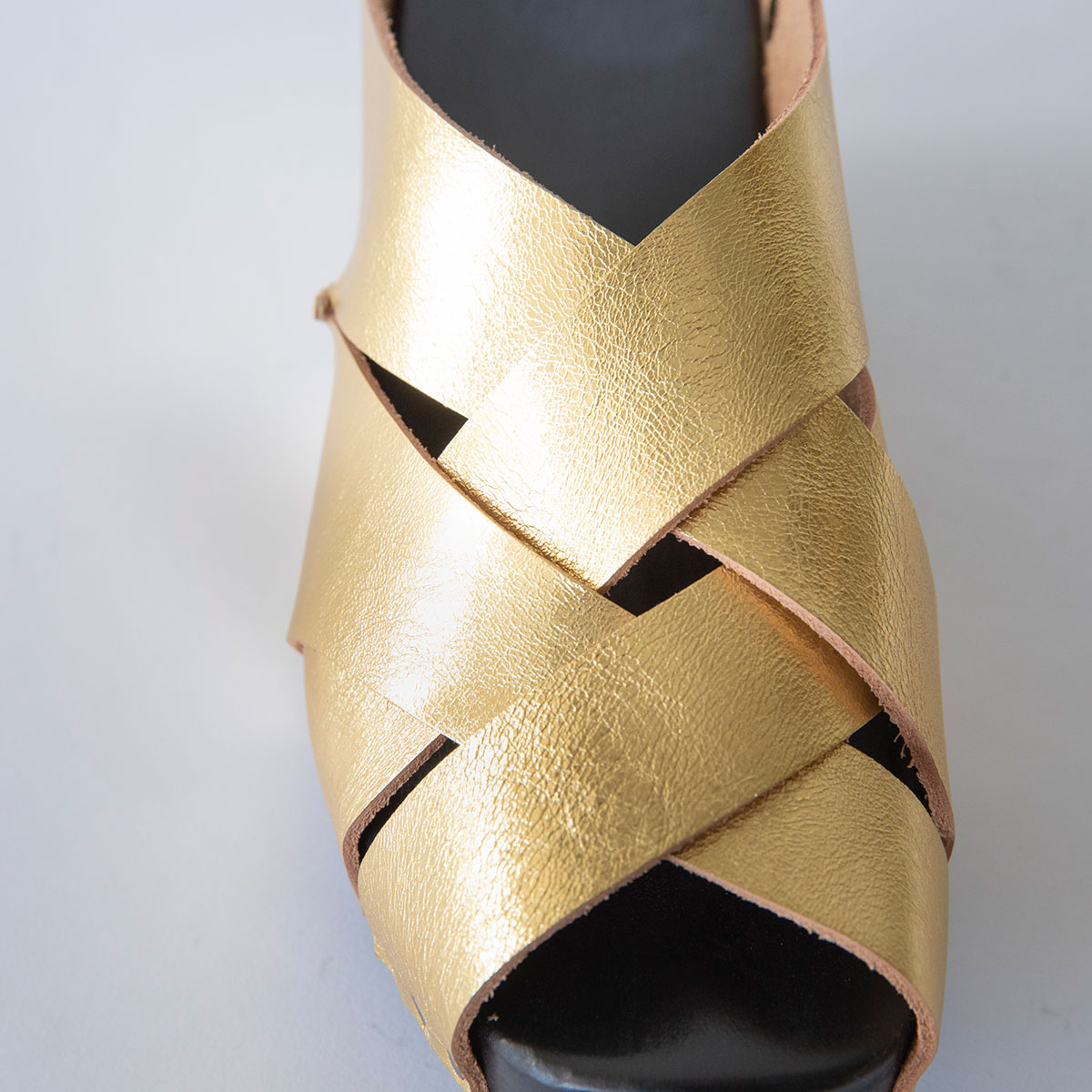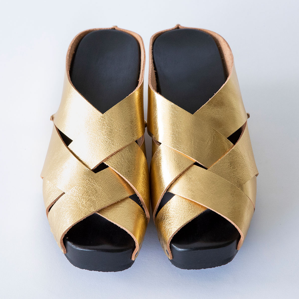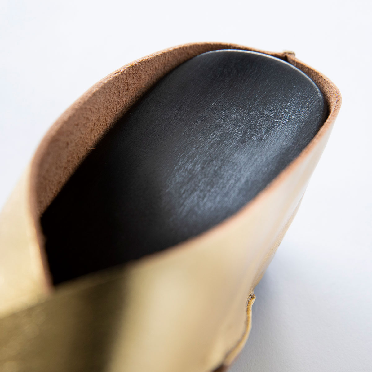 ブラックのウッドにゴールドのレザーコンビネーションは