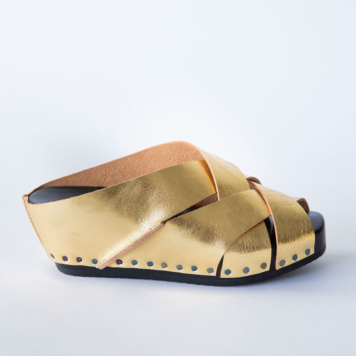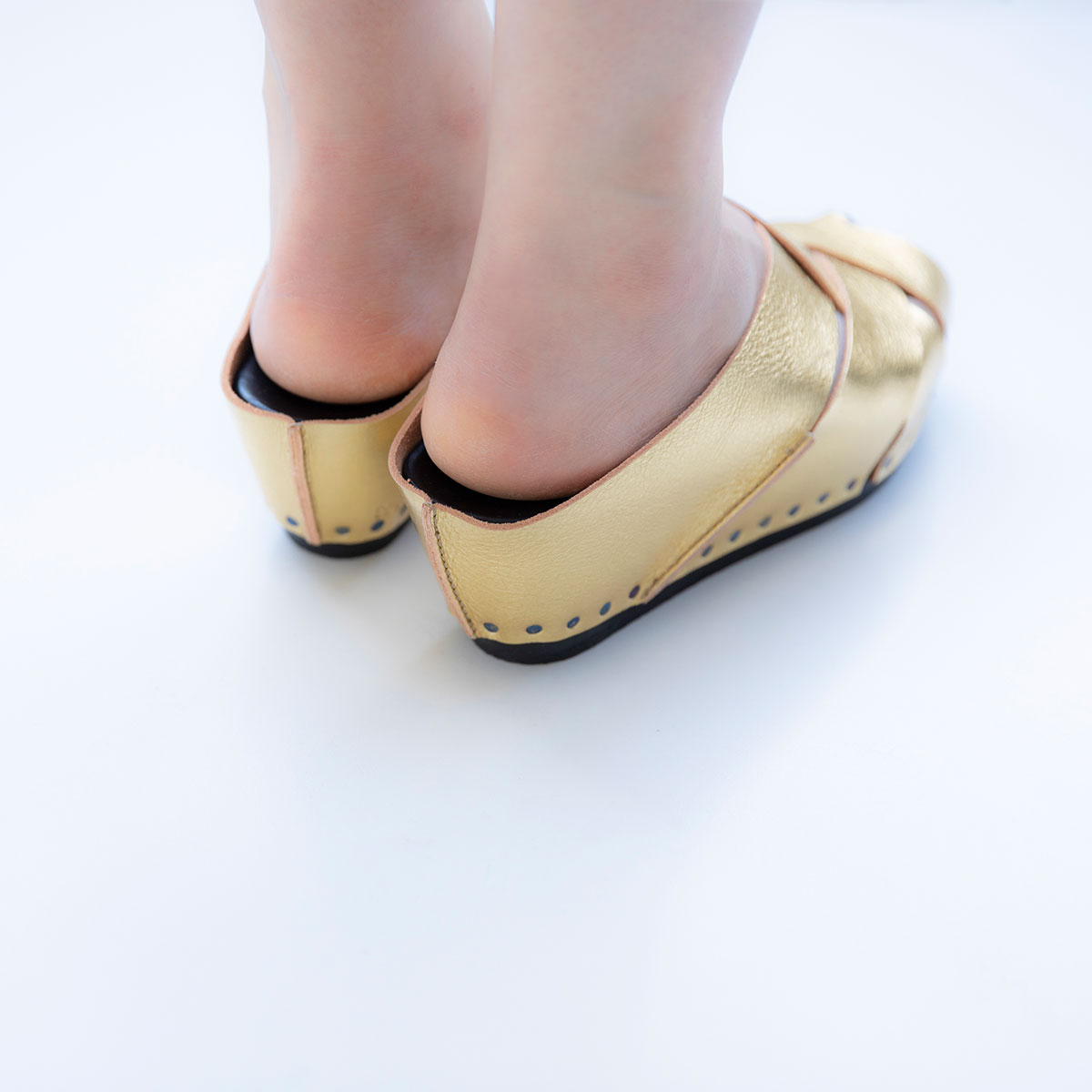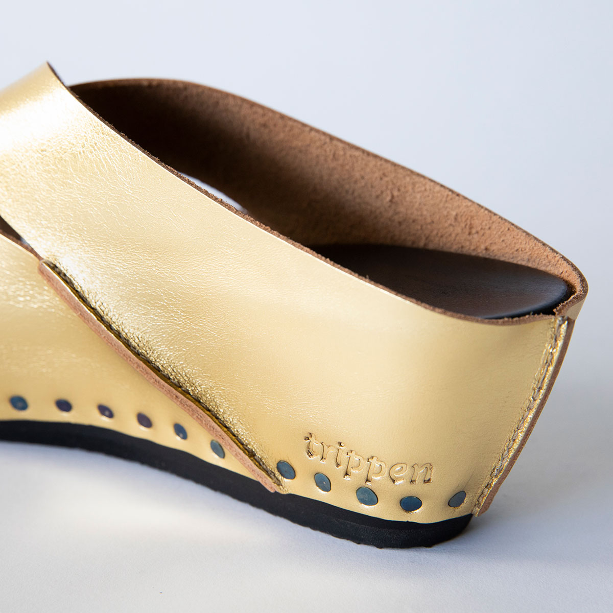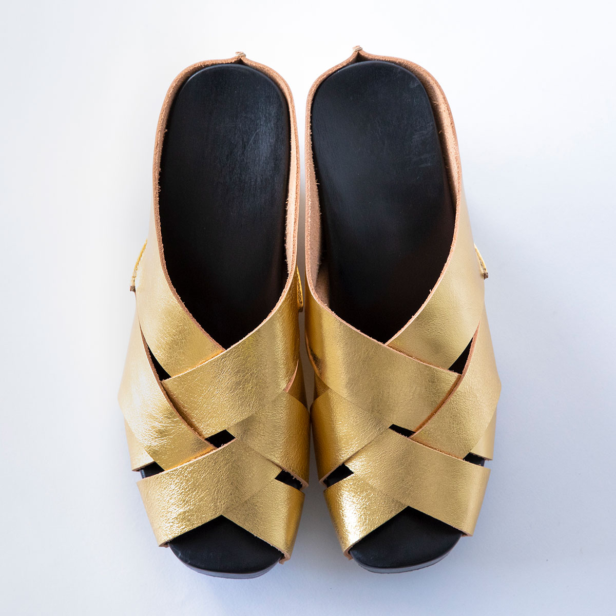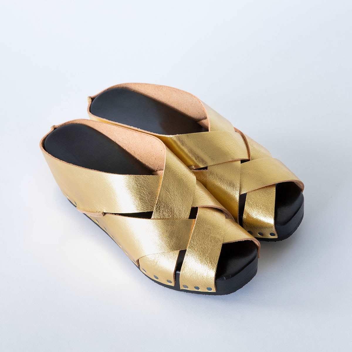 ブラックのウッドにゴールドのレザーコンビネーションは