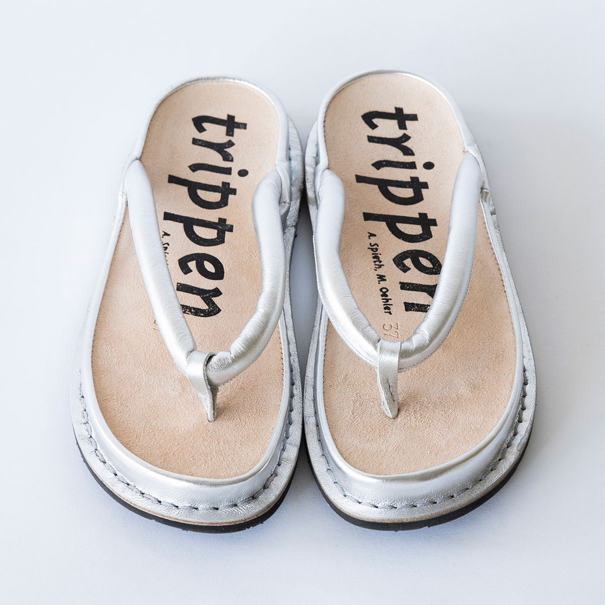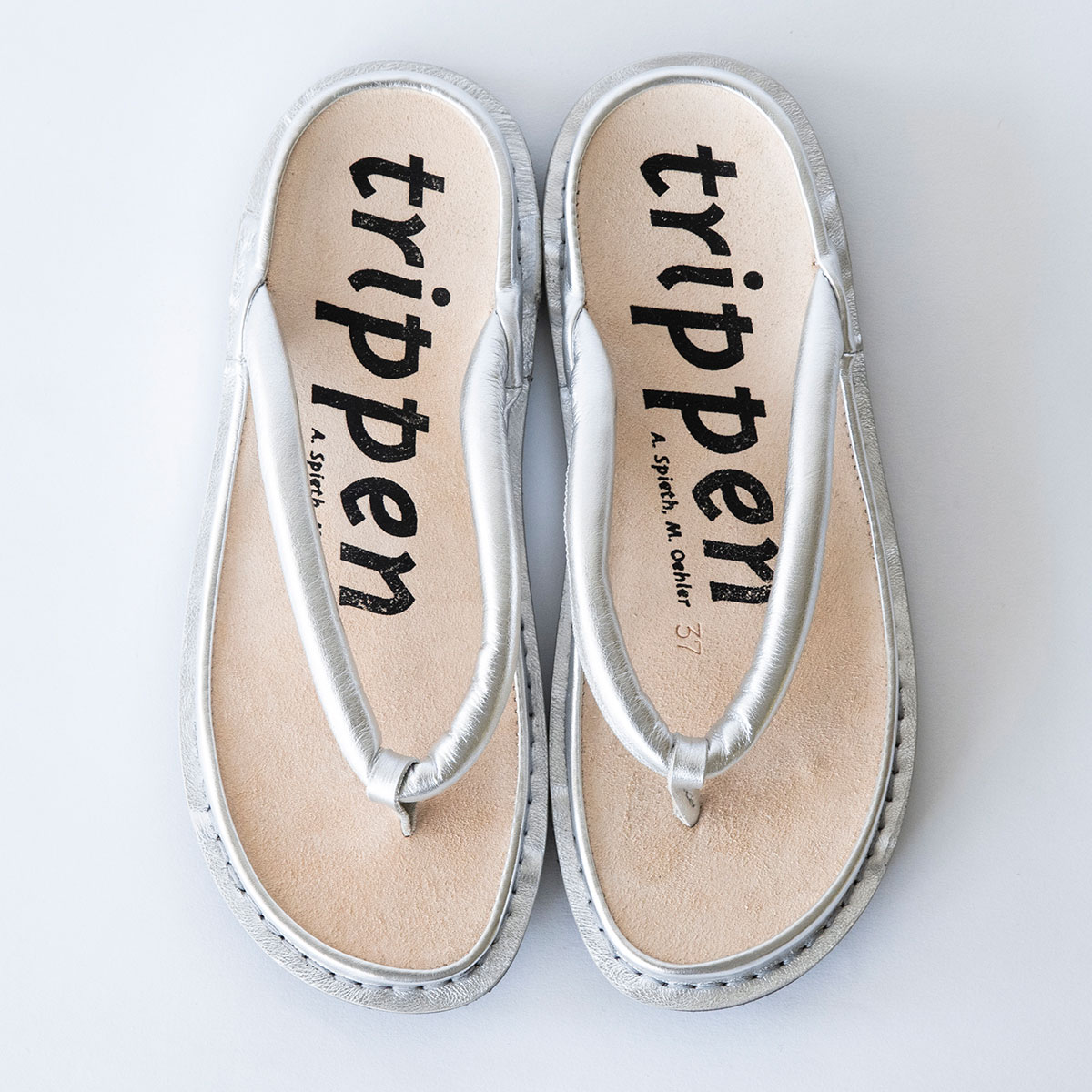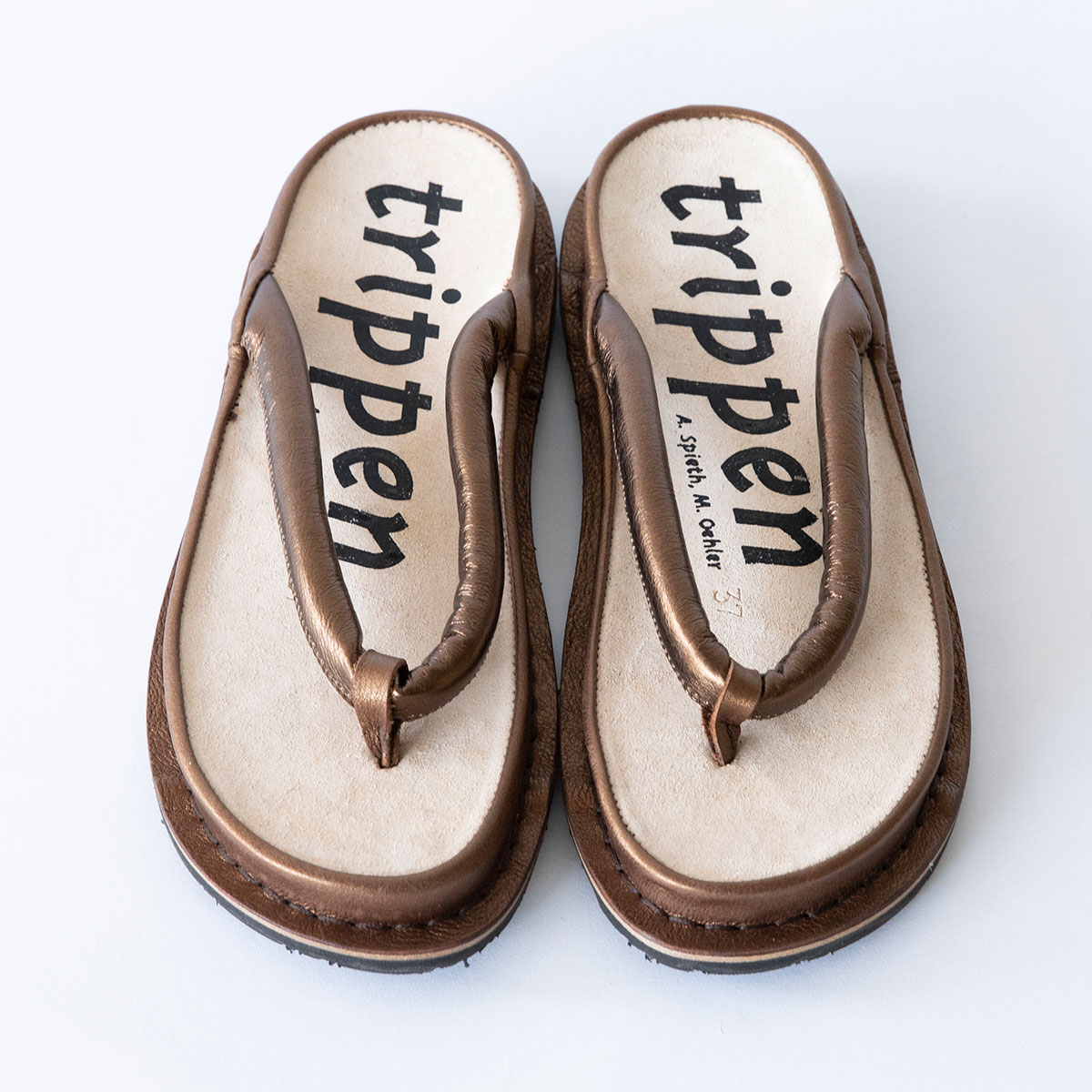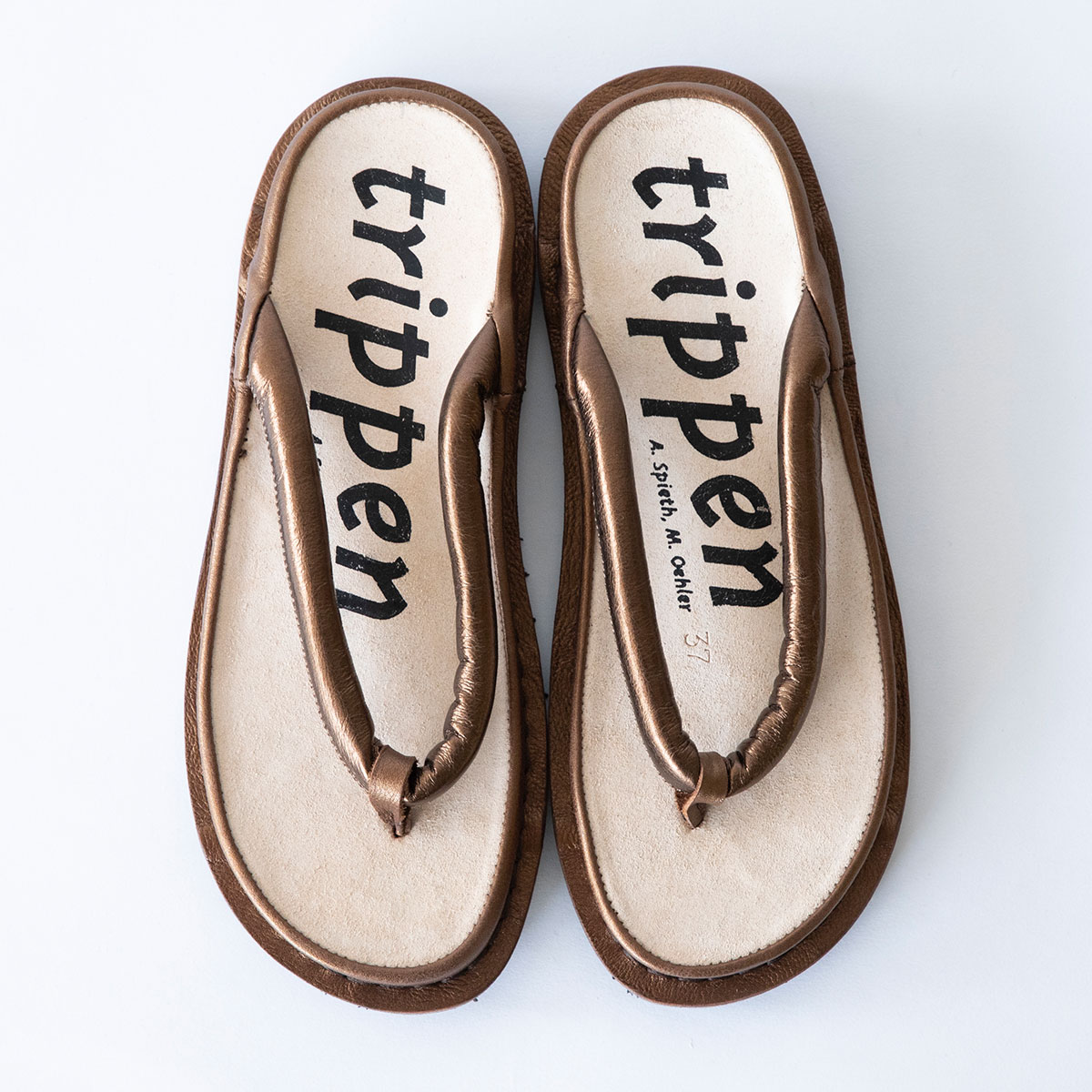 大胆に「trippen」のロゴが入ったインソールは、