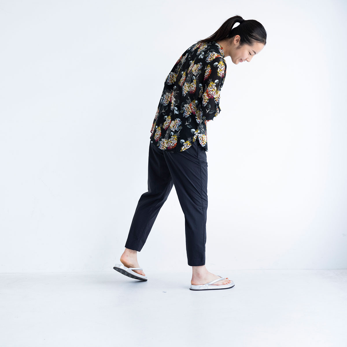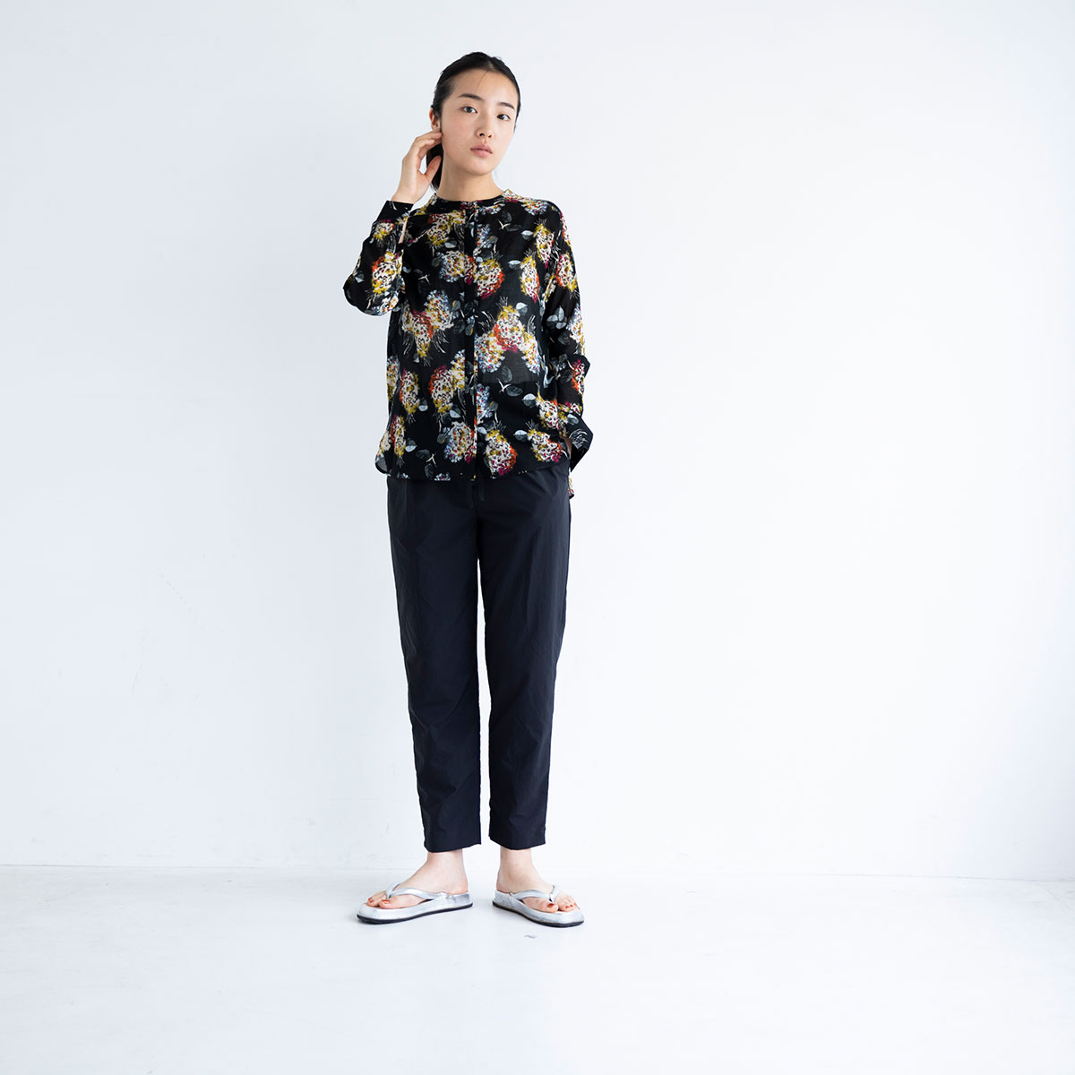 シルバーは、薄手のシャツとパンツで軽やかに。