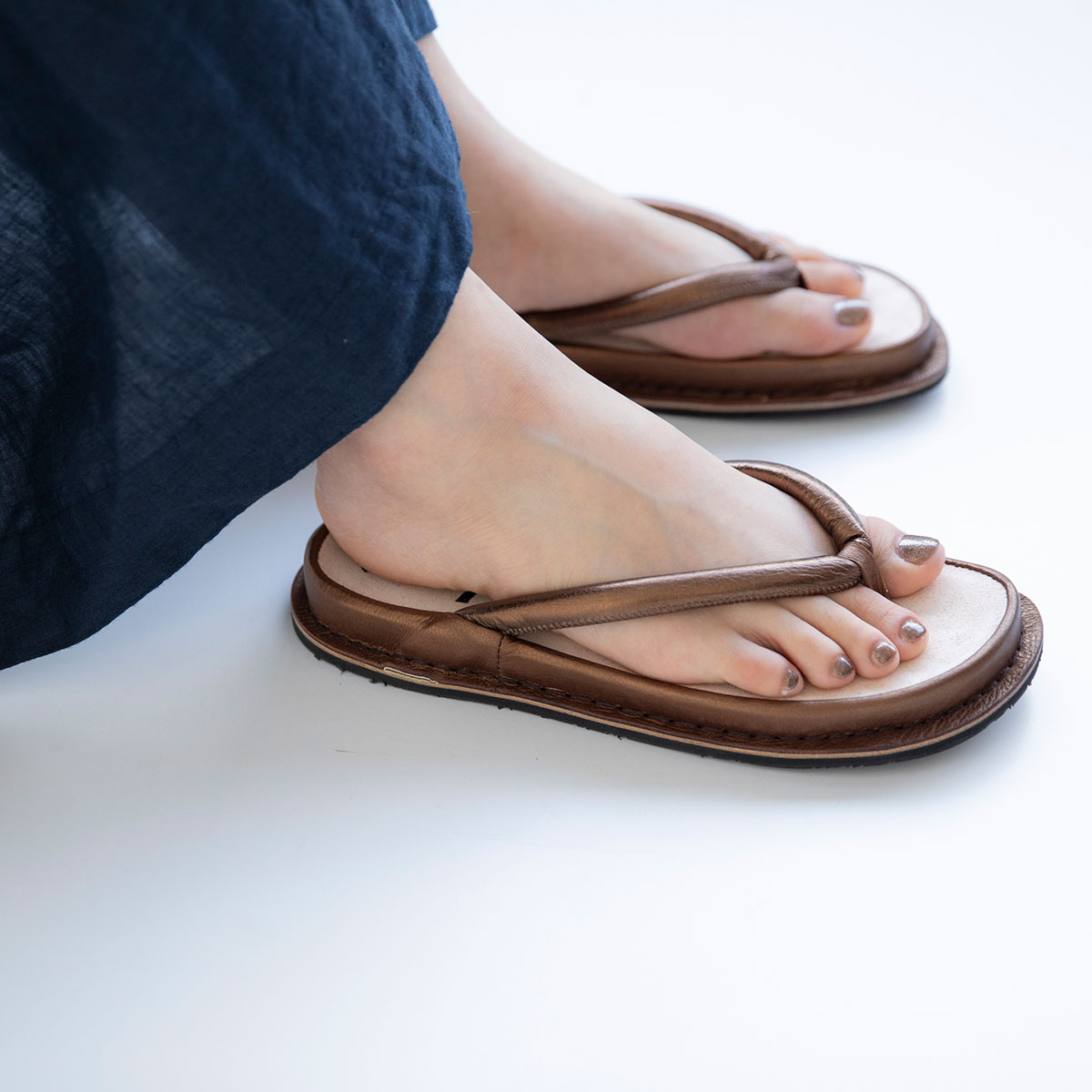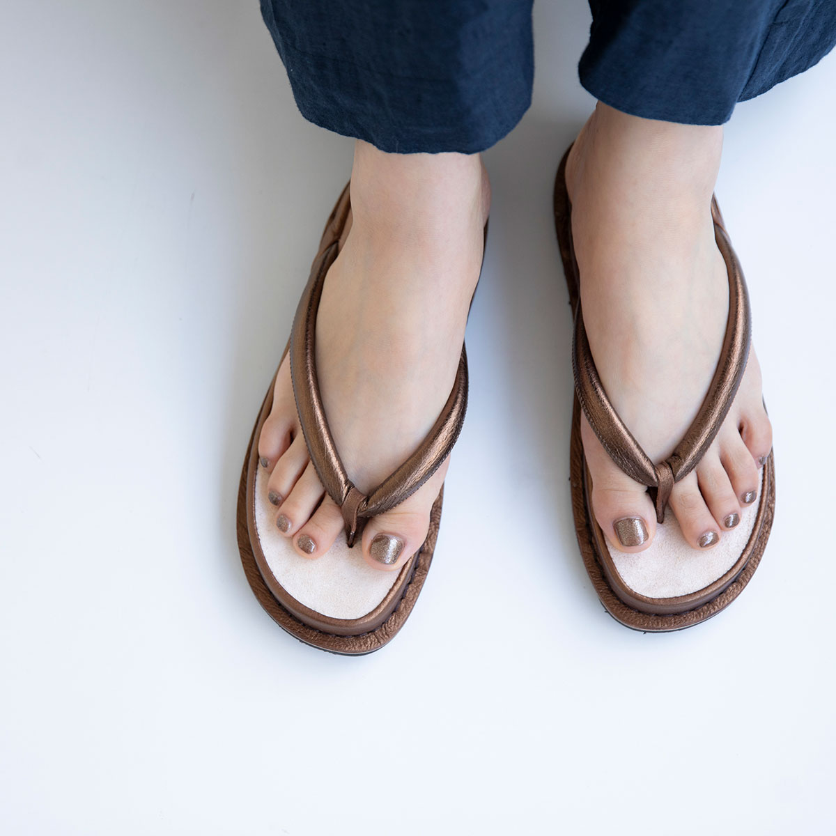 足になじみのいいブロンズのサンダルは