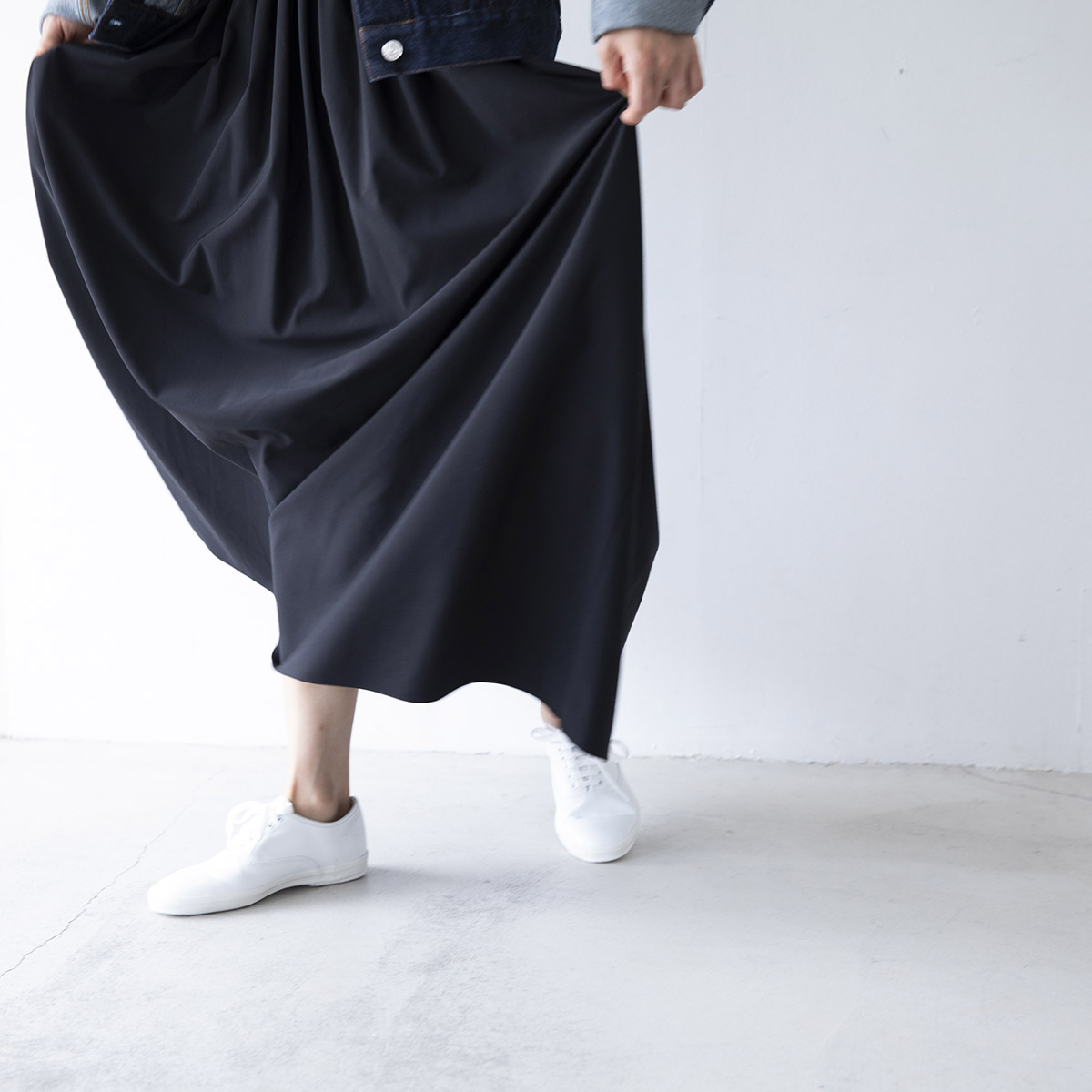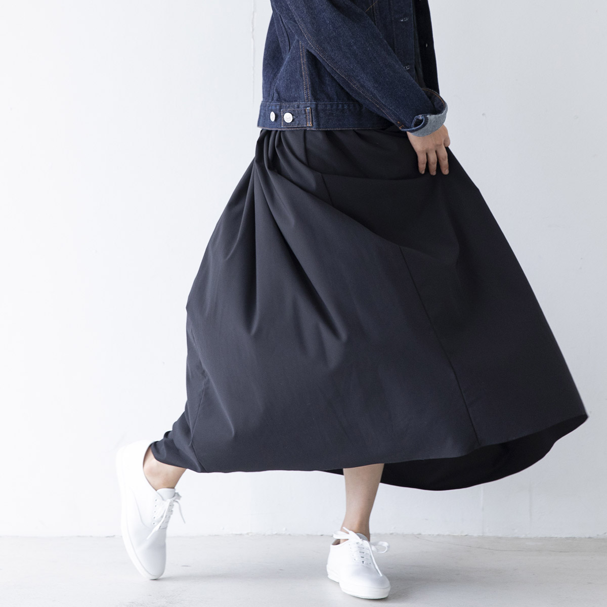 上からニットを着れば冬のマキシ丈スカート風にも。