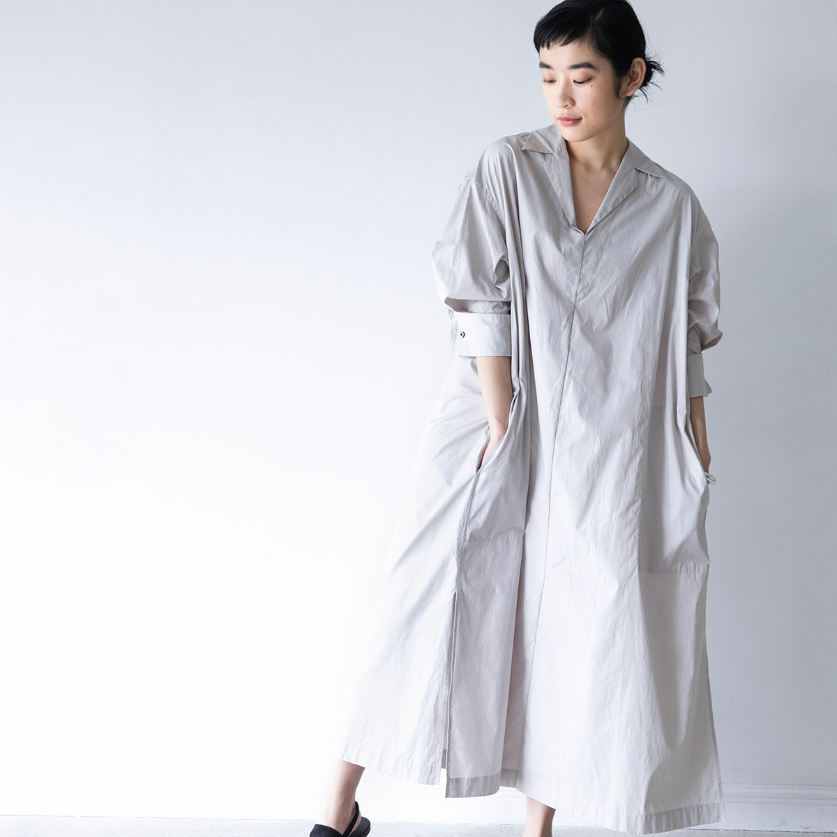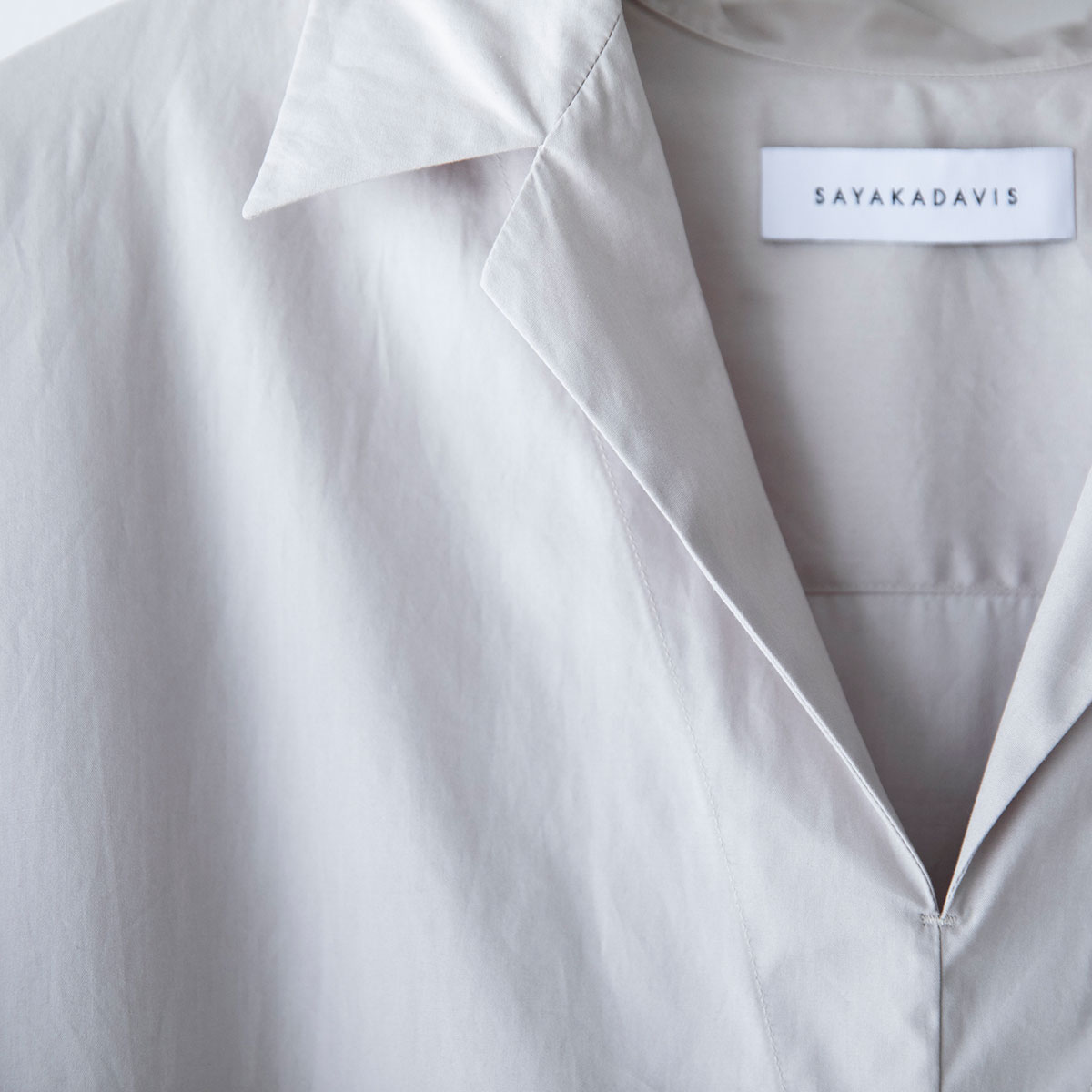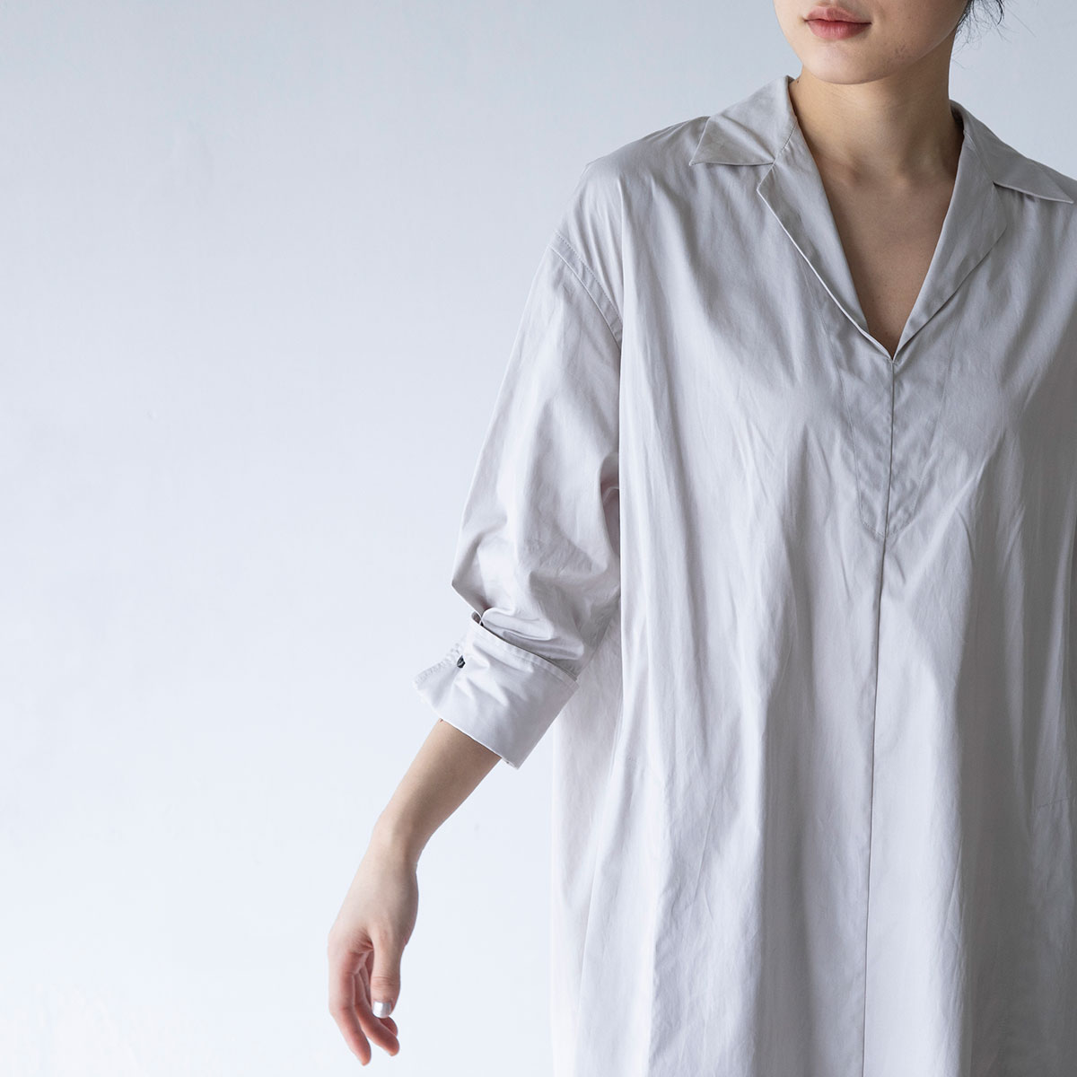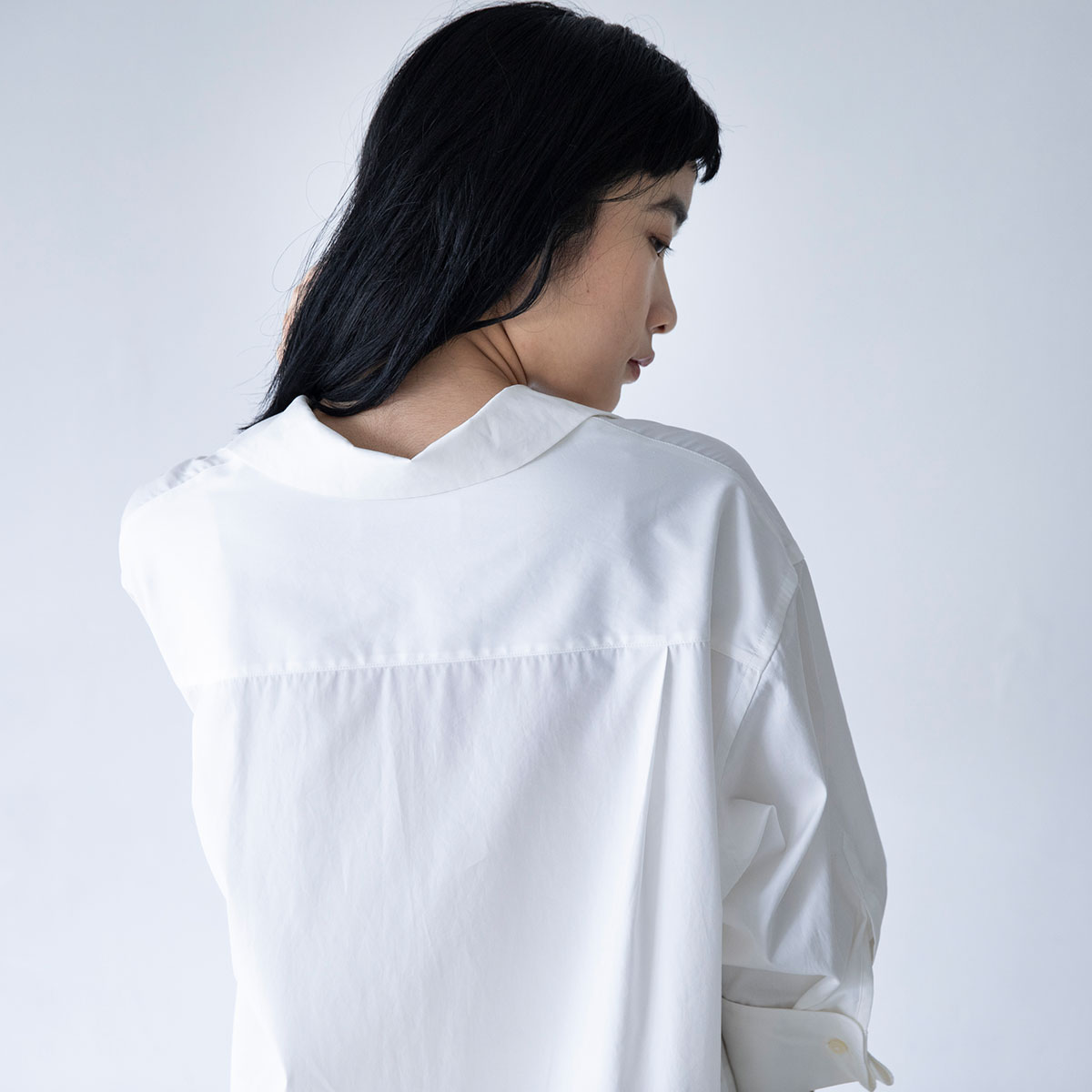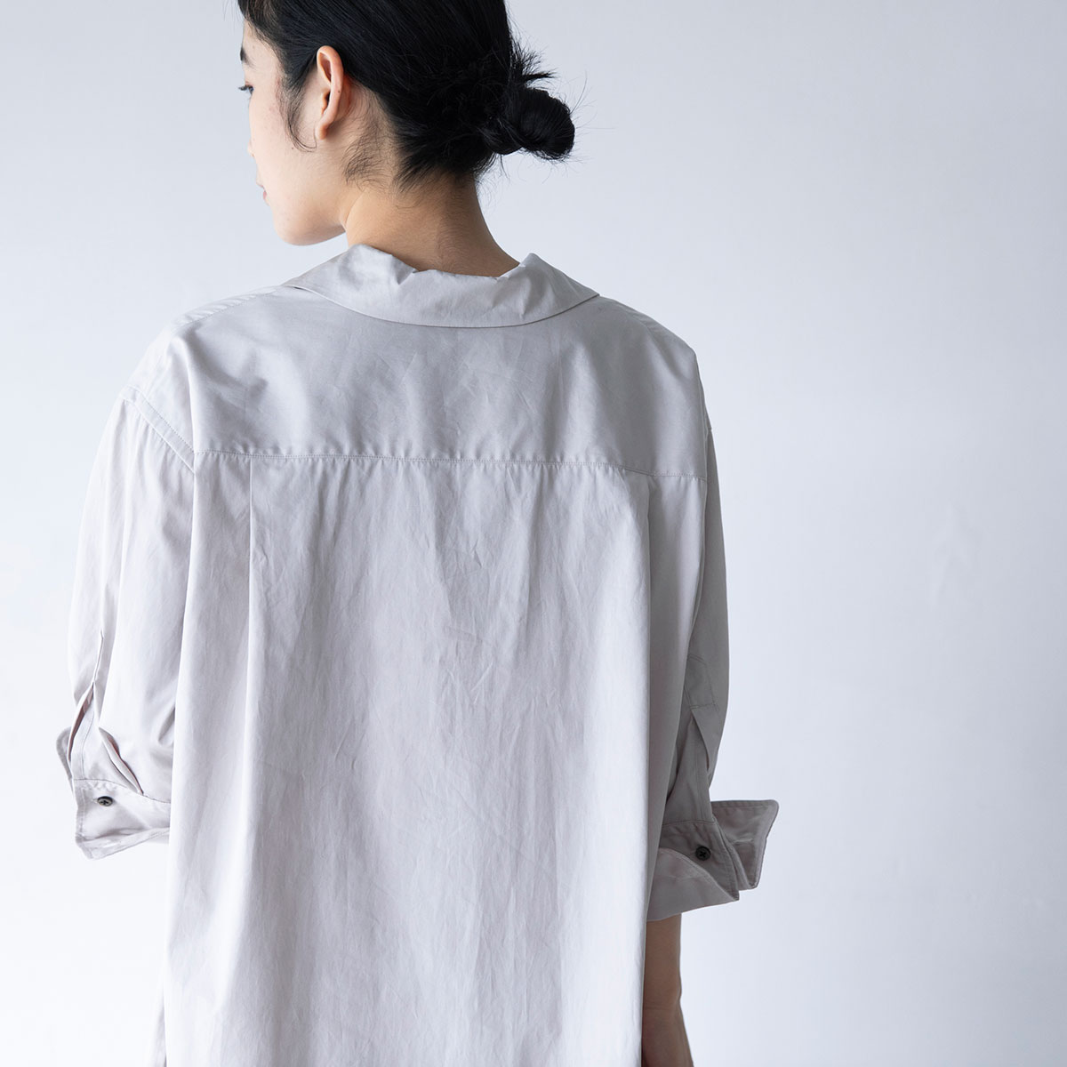 オーバーサイズのシルエットに、開襟で首元に軽さを出し、