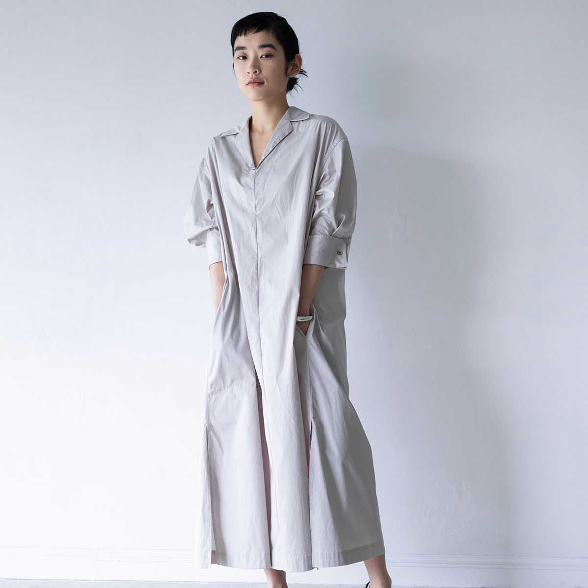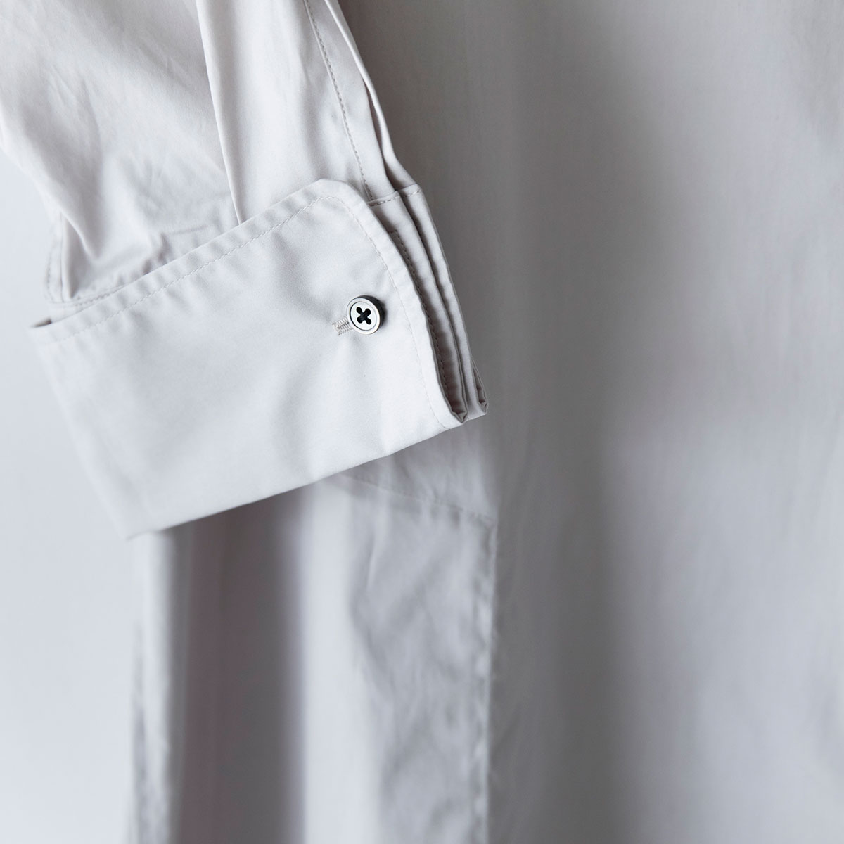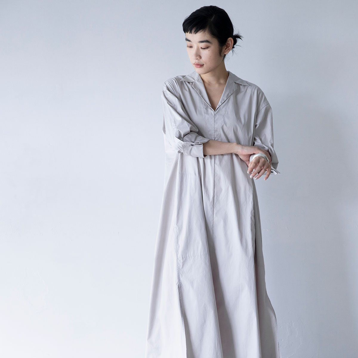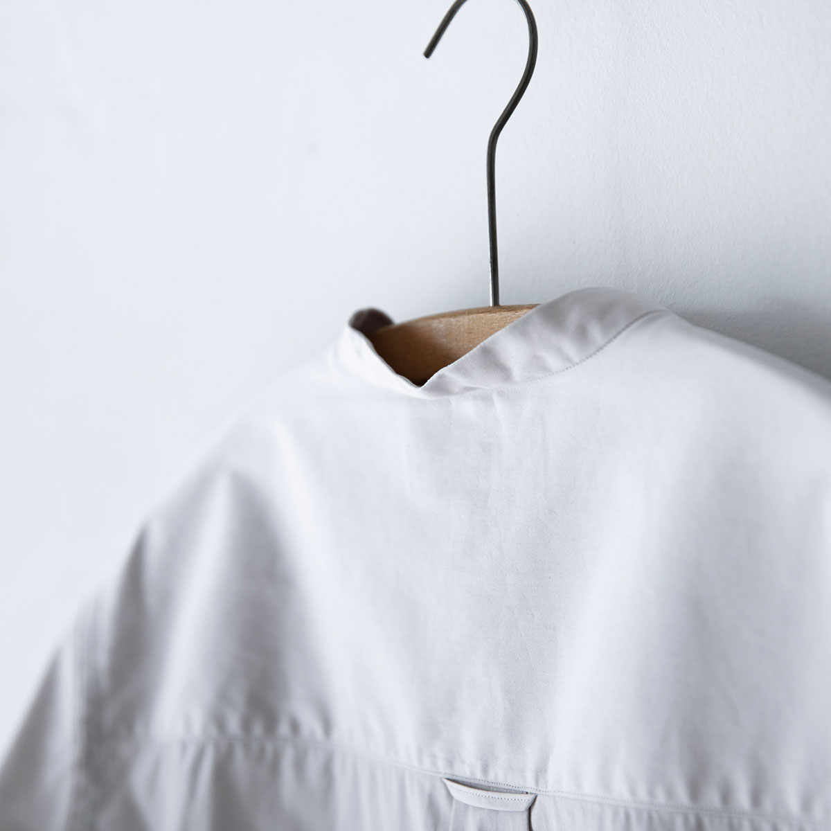 オーバーサイズのシルエットに、開襟で首元に軽さを出し、
