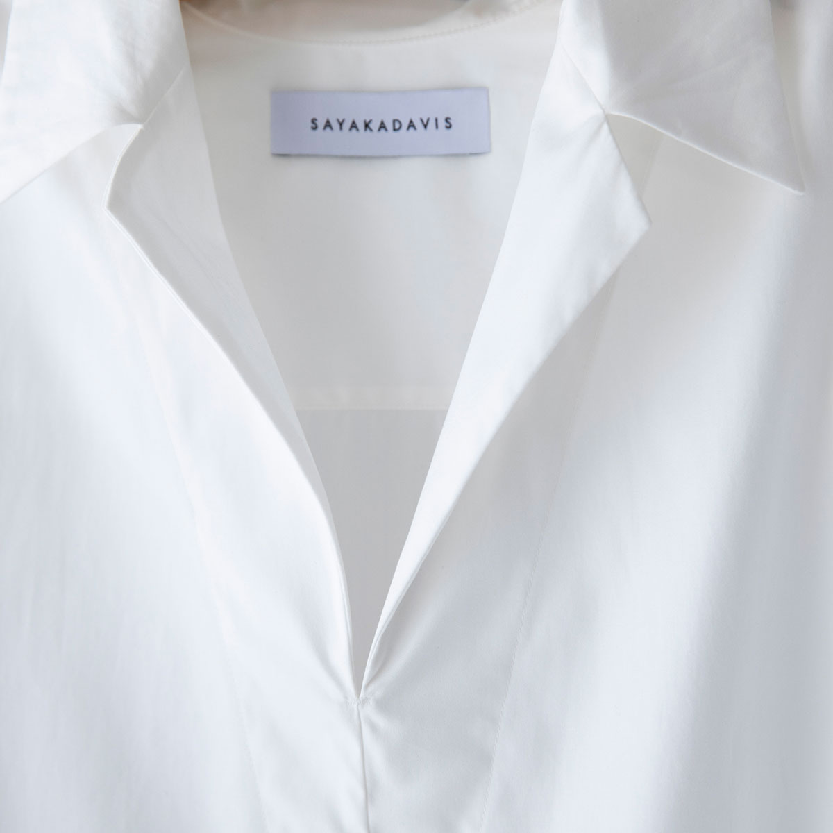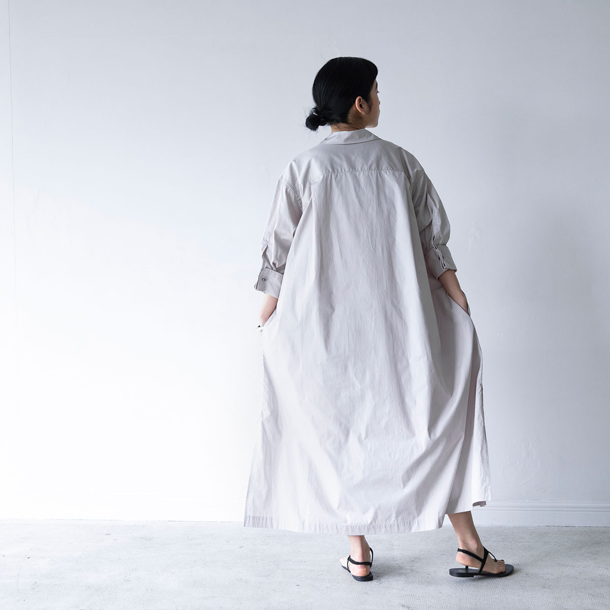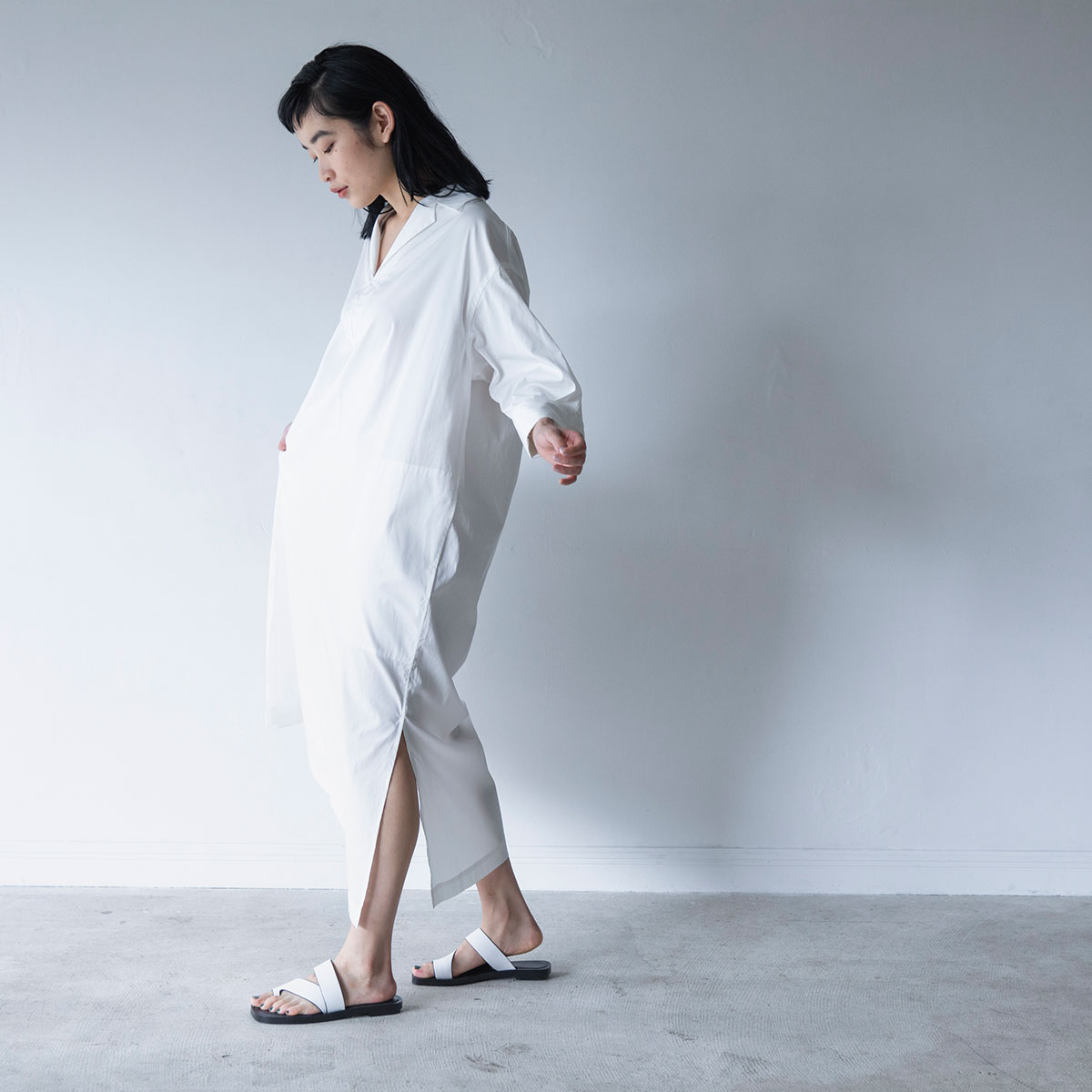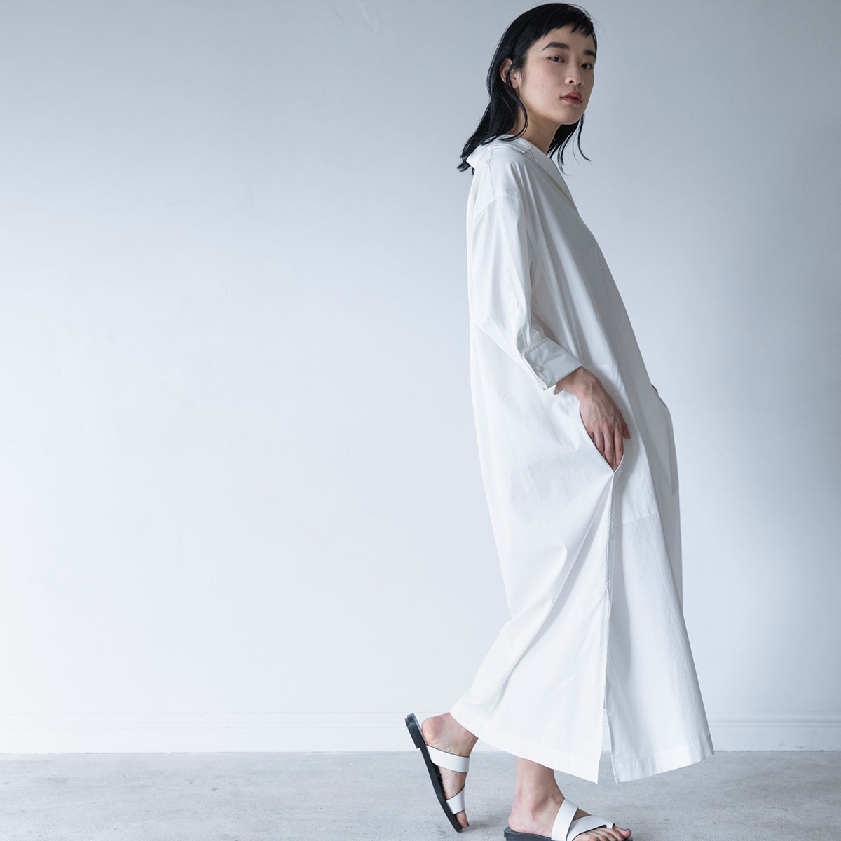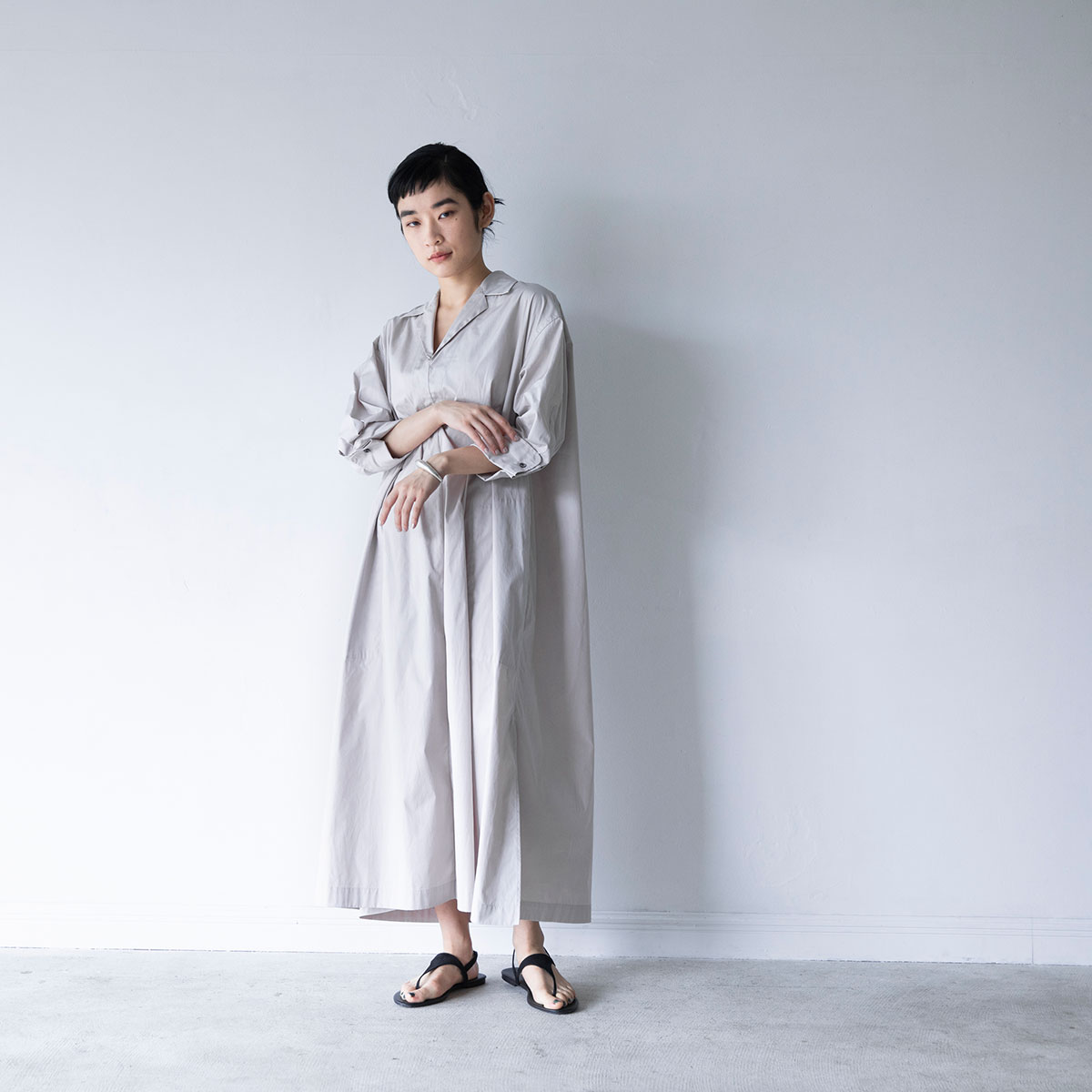 オーバーサイズのシルエットに、開襟で首元に軽さを出し、