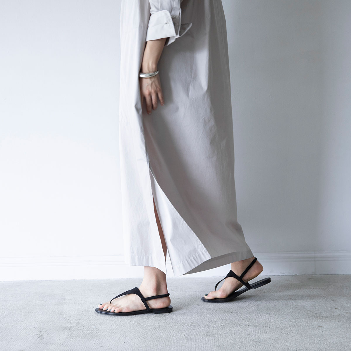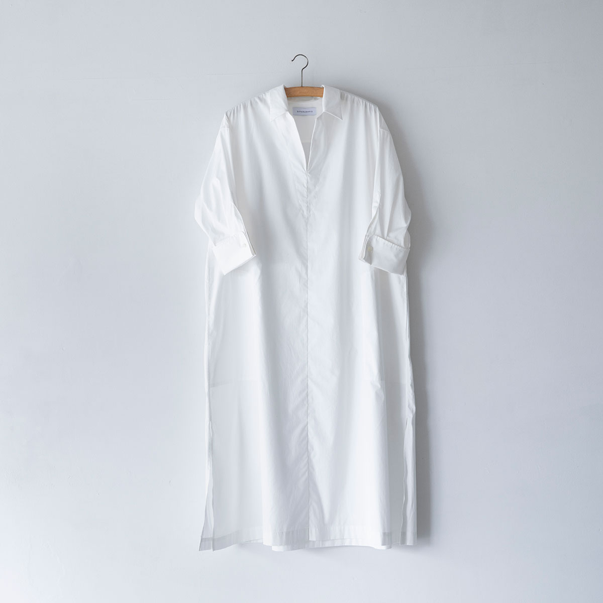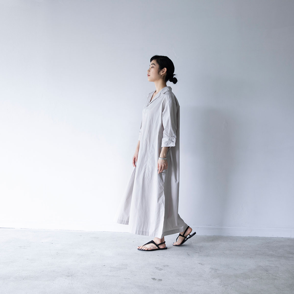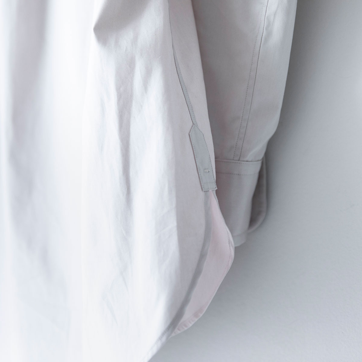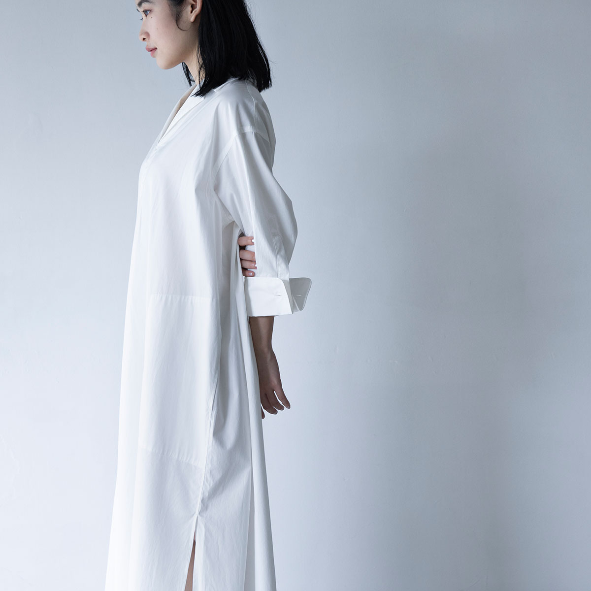 オーバーサイズのシルエットに、開襟で首元に軽さを出し、