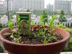 6月05日(火曜日)の観察日記。 さて、今日は正確な大きさを、とおもいまして、 タバコとくらべてみました。 ほぼ、タバコと同じ背くらいです。 そうそう、皆さんにいわれておりますが、 そろそろ、第二次間引きの季節なのでしょう。 そうでないと、風通しが悪くて、病気が発生すると。 じつは、葉っぱがよれよれのがいたので、 ひっこぬいたんですよね〜。 あれが病気でないとええんだがね。 次の休日にまびこうっと。