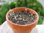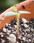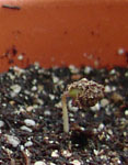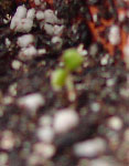 いまこんな感じ。 2コしか芽がでてないようにみえるでしょ? ちがうのよ〜ん。 昨日第3の芽と第4の芽が発芽しましたよ。 じゃ、4コを拡大図で味わっちゃうわ。