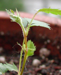 さて、ミニバラ。 「ミニバラを種から育ててるってのは、 きいたことがありません。」 というメールをちょくちょくいただきます。 これってば、なんか「栽培セット」みたいなのに入ってた ミニバラなんで、 りっぱなミニバラじゃあないとおもうんですよね。 花がさけば、うれしいので、いいんですが。 で、もしかしたら、↓これって、蕾?? あんまりちいさかったので、よくわからなくて、 2〜3日おいてみよう、ってことには家でなったんですけども。 これが蕾でないとすると、 1)はっぱが、病気などで縮れて、まとまってでてきてる。 3)はっぱは、まあこんなふうにしていつもでてきてるのだ。 という可能性があります。 ちょっと、ご期待くださいませよ。 週末までには、判明しますことよ。 |