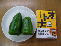 今回、ほぼ日&りょくけんがタイアップして おすすめするのは、沖縄でとれたばかりのピーマン。 ピーマン農家の金城さんでは、 できるだけ新鮮なピーマンを届けたいと 集荷日の前日の朝、みずみずしいピーマンを収穫します。 このピーマン、試食したほぼ日の乗組員が まず、驚いたのがその見かけ。 一般的に流通しているものよりも サイズが大きく、肉厚な印象で、しかも重いのです。 ![]() オトナ語の謎(文庫本)と 比較してみてもほら、この大きさ。 じつは、ピーマンと一口にいっても 品種がいくつかありまして 今回の沖縄のピーマンは一般的によく見かける 薄皮で収量の多いししとう系のピーマンではなく、 肉厚で大玉の種類のピーマンなのだそうです。 では、単純に品種の違いが大きさの違いなのか というとそうではなく、 今回の沖縄のピーマンは ししとう系の約3〜4倍の日照エネルギーで育てられ、 たくさんの太陽の光を浴びて 大きく育ったピーマンなのです。 沖縄の日差しはたしかに強いけど、 九州や本州の3〜4倍はないだろうって。 ええ、その通りです。 日光の強さともう一つ関係するのが気温です。 この品種のピーマンの原産地は熱帯雨林。 日照時間・気温などの自然環境が日本とは大きく異なるため ほとんどのピーマンがハウス栽培されます。 ところが、このハウス栽培、気温の維持にはよくても 野菜と日光の間にハウスのビニールがかけられて 遮ることになるわけですから、 通過する日光の量が1枚のシートで 約80%くらいまで減るのだそう。 南九州などでは、気温がまだまだ寒い2月〜3月、 ハウスにビニールを2枚かけているところ、 日中の平均気温が20℃を超える沖縄では 1枚のビニールハウスで十分なんだとか。 つまり、日差しが強い上に、 ビニールハウスによる日照の低減がなくなるため 原産地により近い環境で育ったピーマンとなるのです。 このピーマンが店頭であまり見かけないのは 野菜の味によるものではなく 流通の事情によるところが大きいと りょくけんの永田まことさん(永田先生の息子さんです)は 語ります。 1個が大きいため、一袋のグラム数を同じにすると 個数がどうしても少なくなる。 たとえば肉詰めピーマンをするときに 「最低4個(家族の人数分)は、はいってないと・・・。」 とか、 野菜炒めをするときに 「子供がピーマン嫌いだから、小さくていいわ。」 なんていうお客さまのニーズが 肉厚大玉系のピーマンを市場から 離れさせてしまったのではないかと。 でも、本来野菜を食べることにおいて大切なのは 味や栄養ではないでしょうか。 野菜本来のおいしさを知るために、 この肉厚で大玉のピーマン、 一番おいしい旬の時期に試してみませんか?