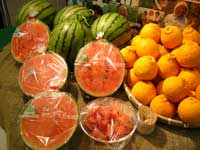 今年の2月に開催され、大好評のうちに終了した 永田ファミリー“りょくけん”の松屋銀座出店、 4月20日(水)から5月3日(火)までの 2週間開催されているのですが、 はっと気がつけば、のこり6日! おいしいものを逃すと 健康体でゴールデンウイークを迎えられない!と つい先日、あわててお邪魔してきました。 りょくけんレポート特派員のナカバヤシです。 今回の感想を一言で言いあらわすと うーんそうですねー。 「あー、おいしかった。おなか、いっぱい。」 ■果物のおいしい季節が近づいてきました! 前回同様、りょくけんのコーナーについて 一番はじめに目に飛び込んできたのが果物。 あれ? でも、見慣れない名前が書いてありますね。 ![]() はるか??聞きなれない果物です。 わかんないことは、 どんどん聞いていきましょう。 りょくけんさーん、 この『はるか』って、なんですか? 「あ、これはですねー、日向夏の突然変異種なんです。 柑橘類ではよくあって、同じ種なのに地中の菌や 周りの環境の影響で、変わり枝がでてきて、 そこから、親とはことなる実をつけるんです。」 へぇー、はじめて聞きました。 日向夏って皮の白い部分も一緒に食べられる ふわふわしててジューシーな黄色い果物ですよね。 「ええ、そうです。 そもそも、みかんも中国から伝来した 突然変異種なんですよ。」 はぁー、勉強になります。 ということで、かわいいアイドルのような名前の こちらの柑橘類“はるか”を 早速、試食をしてみます。 突然変異とはいえ、親戚のようなものですから お味は日向夏に似ています。 「酸味が日向夏よりマイルドですからね、 酸っぱいの苦手なかたはこちらがおすすめですね。」 ふむふむ、なるほど。 りょくけんで買うときに いつも感動するのが 種類の豊富な試食の数々なんですが、 ただたくさん試食できるだけじゃなく それぞれの食べ物のルーツや違いについて 説明を聞いたりすると ちょっとだけ、かしこくなった気がします。 気がするだけかもしれませんが・・・。 はるかのとなりには、小玉すいかが並んでいます。 ![]() 早速、いただいてみました。 ぱくっ、甘いっ。果汁たっぷりのシャリシャリです。 これはおいしい、ひとくちで気分はすっかり夏です! もう一ついただいて良いものかどうか悩みつつ、 すいかを見つめていると、あることに気がつきました。 ![]() このすいか、薄いっ! 皮が薄いわっ。 りょくけんさん、このすいか、皮が薄いですね。 「ええ、薄いでしょう。 熊本からここまで来るのに 結構気をつかいながらやってきてるんですよ。 産地から流通にのって店頭に並ぶまでの間に なにかにぶつかるといたんだり、 皮がわれちゃったりするんで、 慎重に運ばないといけないんですよね。」 なるほど。 こんなにおいしいすいかを いつでもどこでも食べたいと思っても そんなに簡単に手に入らないかもしれないってことですね。 たしかに、これほど皮の薄いすいかは、 他のお店でみかけたことがないです。 夏が本格的にはじまって このすいかを食べたいのに なかなかみつからなかったら、どうしよう。 そのとき、後悔しないように、 もう一つ食べてもいいですか。 「どうぞ、いいですよ。 そのかわり、しっかりレポート書いてくださいね。」 はーい、もちろんです!ぱくっ。 後悔しないように、とかなんとか言いながら、 夏を待たずに、今日買って帰ることに決めました。 取材の途中でも、買いものリストの作成はわすれません。 ■緑があふれるお野菜をどうぞ。 皮がむいてあってすぐに食べられるので ついつい試食の果物のことばかり書いてしまいますが それじゃあ、いけません。 りょくけんのお野菜をわすれてはいけません。 前回のページで「ほぼ日」がおすすめした 沖縄のピーマンをはじめとして 今回もたくさんのお野菜が並んでいます。 ![]() ![]() アスパラ、ルッコラ、ルッコラセルバティコ、 うすいえんどう、などなど。 りょくけんがおすすめする野菜として お伝えしていたお野菜もちゃーんとあります。 ところで、ルッコラとルッコラセルバティコって なんですか。 「ルッコラは、別名“ロケットサラダ”といいまして ゴマの風味があり、ちょっと辛みがあります。 サラダなどによくつかわれますが、 炒め物にしてもおいしいですよ。 ルッコラセルバティコは、ルッコラの野生種で ルッコラに比べて、辛みと香りが強いですね。」 ルッコラって、イタリア料理屋さんで よく耳にする野菜というイメージがあるのですが、 実際どんな味だったかというのは あまりはっきり覚えてませんでしたが 今回、ばっちり覚えました! うすいえんどうは、買って帰りますから のちほど、くわしくお伝えしまーす。 取材ですけども、買いものチェックは わすれませんよ。 ■ジュースやヨーグルト、ソフトクリームまでもが。 今回の試みで、りょくけんがとくに力を入れているのが 加工食品の数々。 ![]() こちらはレモンジュース。 100%レモン果汁のレモン