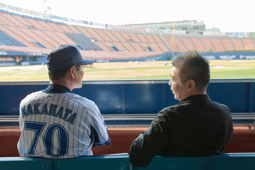 | 中畑 | じゃ、球場のなかを歩きますか? それとも、先にしゃべる? 写真、撮る? どこで撮る? |