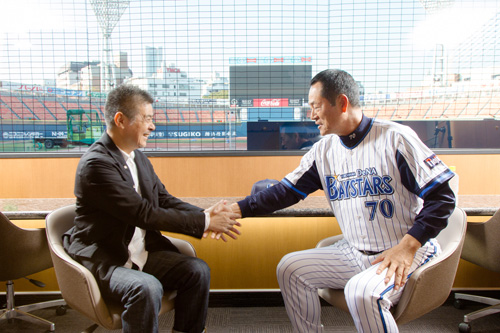| 中畑 | それは考えられません。 お客さんの目がどれだけ モチベーションを高めてくれるか。 それは、ぼく、長嶋さんから学んだことですよ。 |