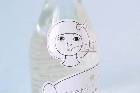 | ── | これまで、日本酒のパッケージって 「書道!」みたなイメージがほとんどだったと 思うんですが、 この「NAMI」と「UMI」は そういう一升瓶のとなりに置かれるんですよね。 |