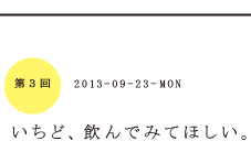 | ── | ほとんどお酒の飲めない糸井さんも ひとくち飲んでみて 「あ、このお酒の話になら混ざれるなあ。 それが、うれしい」って。 |