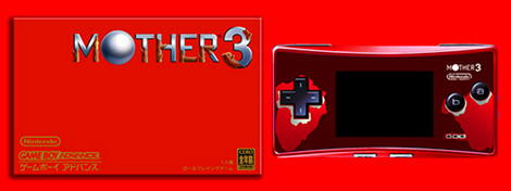 糸井氏が開発した「 MOTHER3」のソフトと 特別仕様のゲームボーイミクロ。「MOTHER2」は、アメリカでは「EarthBound」という名で知られている