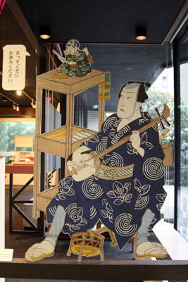 三味線をひくと鐘を鳴らす人形で