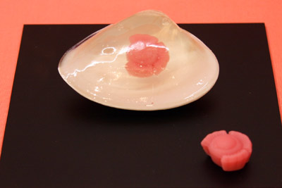 蛤の殻に、琥珀羹(寒天菓子)が盛られ、