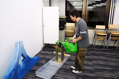 君は、ししおどしに夢中になり過ぎだったよ。 |