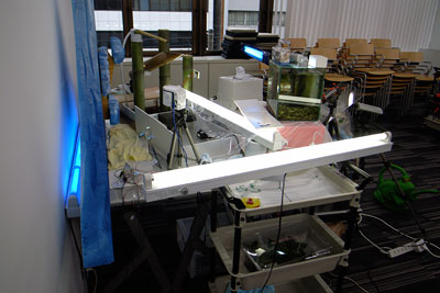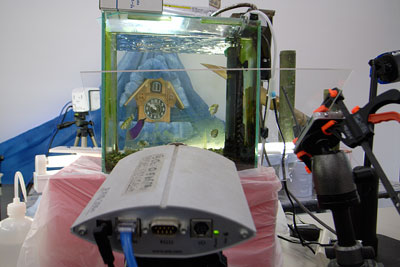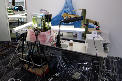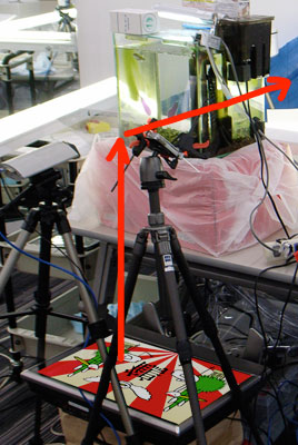 フグカメラのと水槽の間にはアクリル板が斜めに