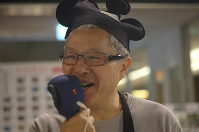 マイクをまわしながら、
