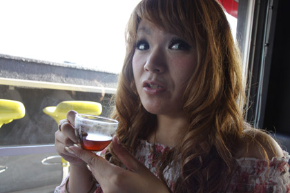 | これを飲みやすくしたのがチズさんの 「うなはたけ茶」というわけで、 いったいどんなお茶なのかをうかがうため 記者発表に行ってきたんですよ。 |