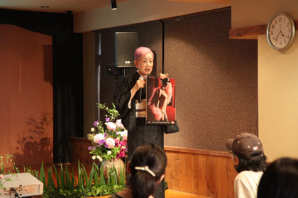 | ほんとに、おやさしい。 ご挨拶も、ひとりひとりに最敬礼なさって、 なんだかこちらが「大事にされてる」と 思えてしまうんです。 「ほぼ日」の対談でおっしゃっていた 「自分を大事に、自分をきれいに」という お考えのとおりでいらっしゃるんだ、と 感じました。 |