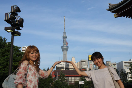 | 胸いっぱいになりすぎて盛り上がり、 帰りに東京スカイツリーといっしょに 記念写真を撮ってしまいました。 |