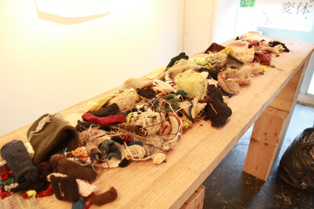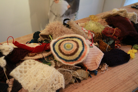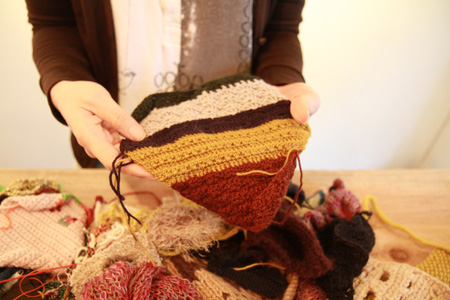 机にたっぷり用意されたさきほどの編み地からうまれた