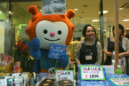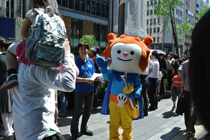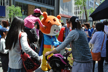 ▲「東日本復興応援プラザfrom銀座」内を歩くホヤぼーや。